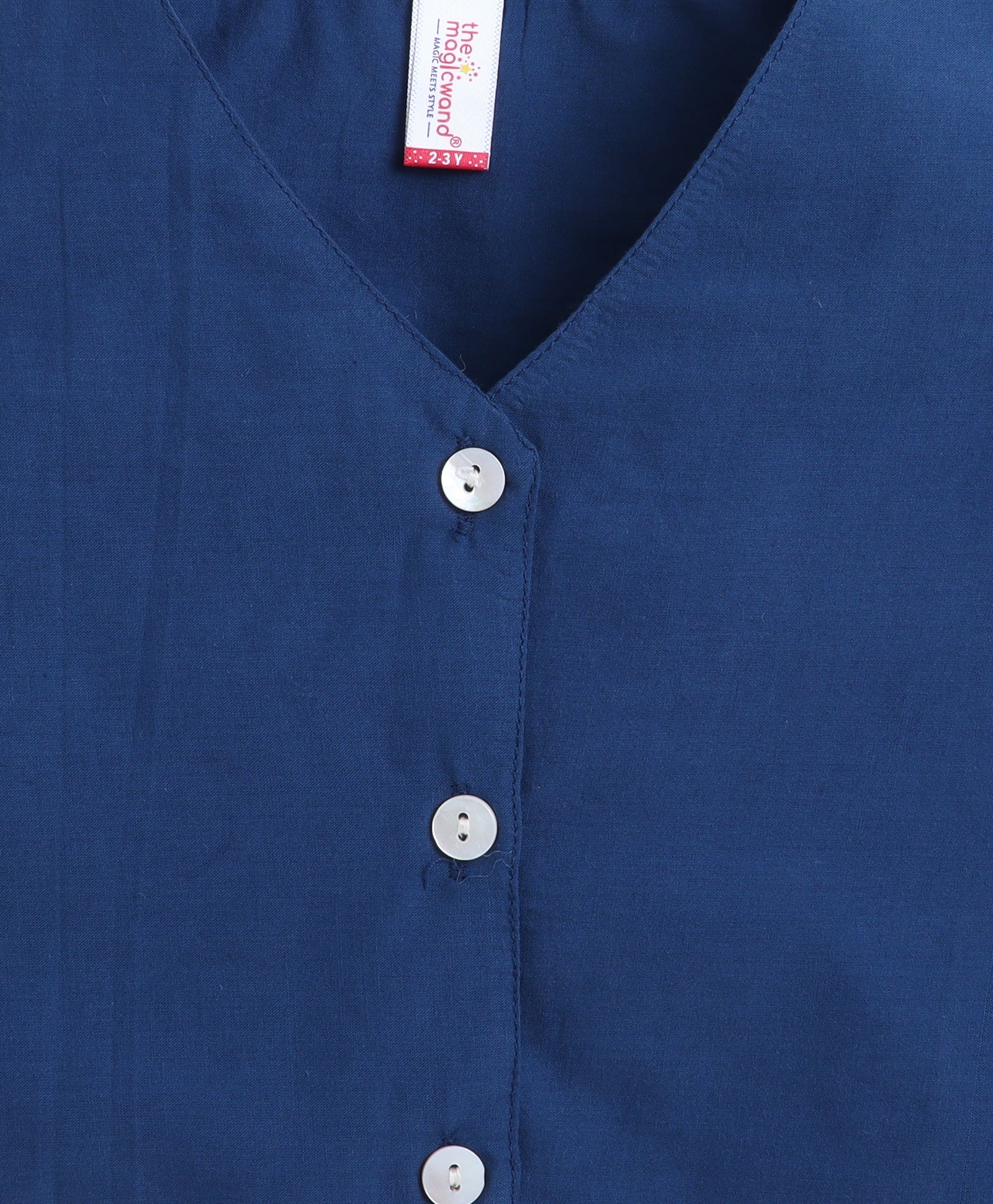 The Magic Wand Cambric Cotton Prineted Sleeveless waistcoat Top and Bottom Set- Teal Blue