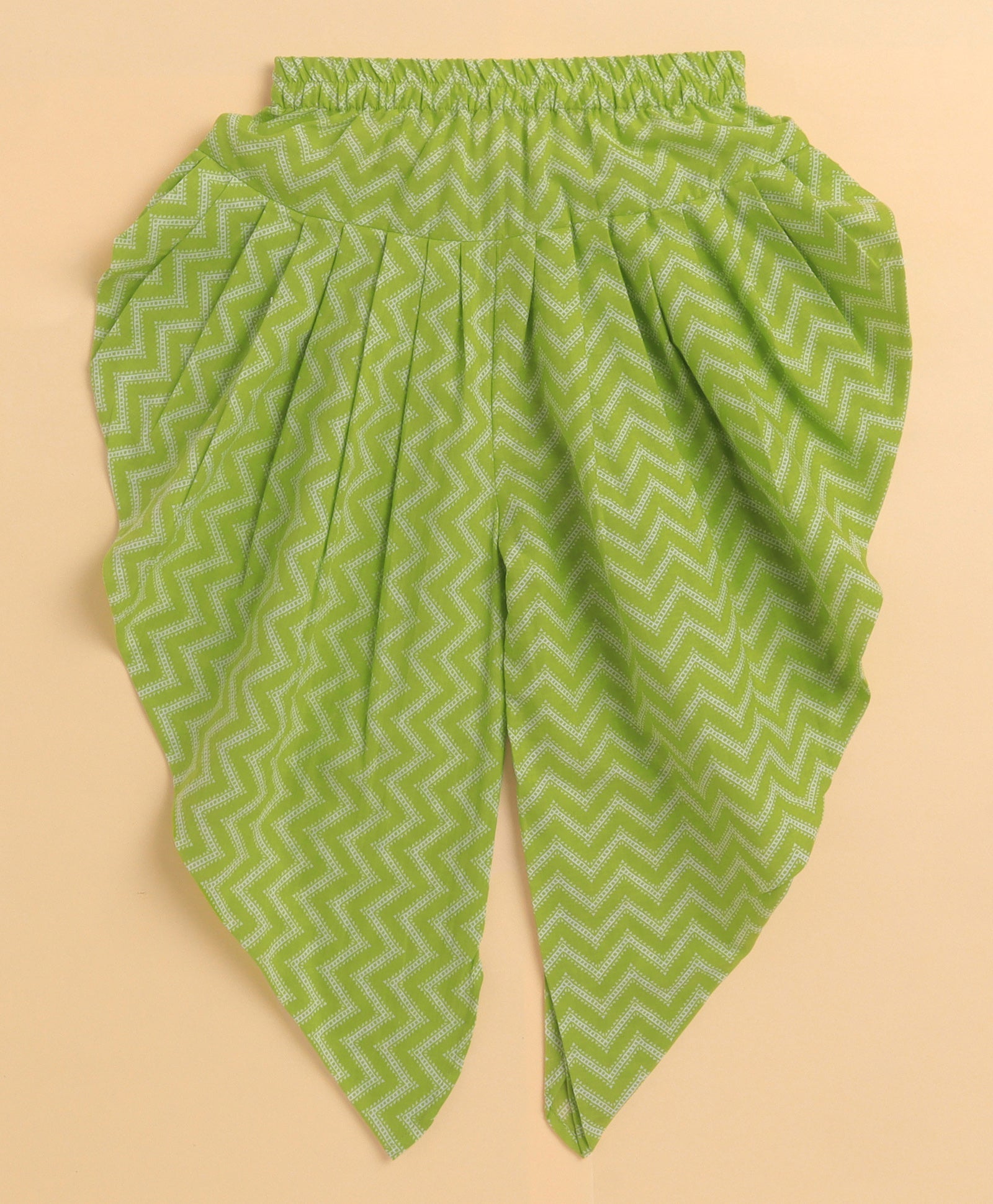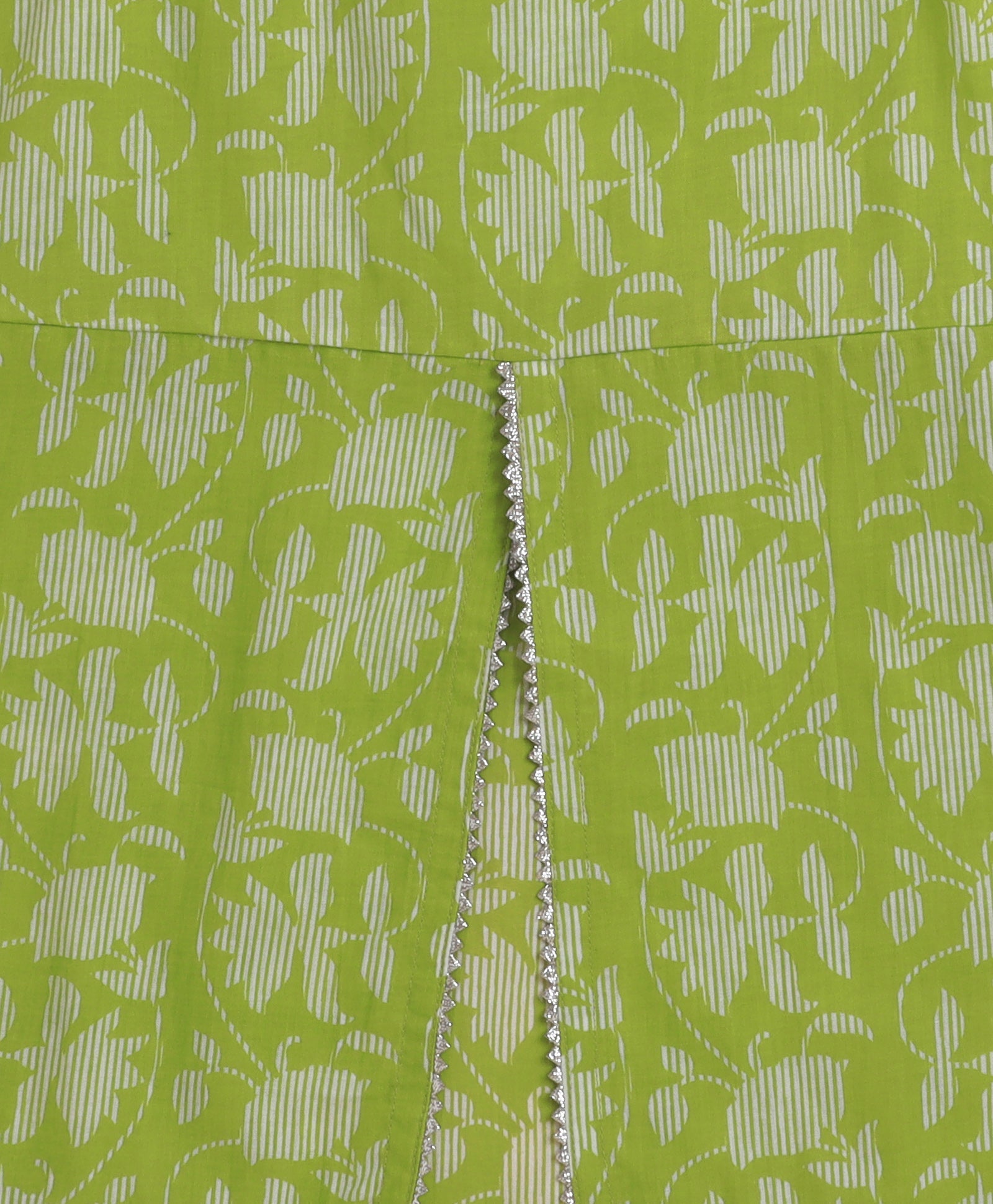 The Magic Wand Cambric Cotton printed Singlet Front Slit Kurta and Dhoti Set - Green