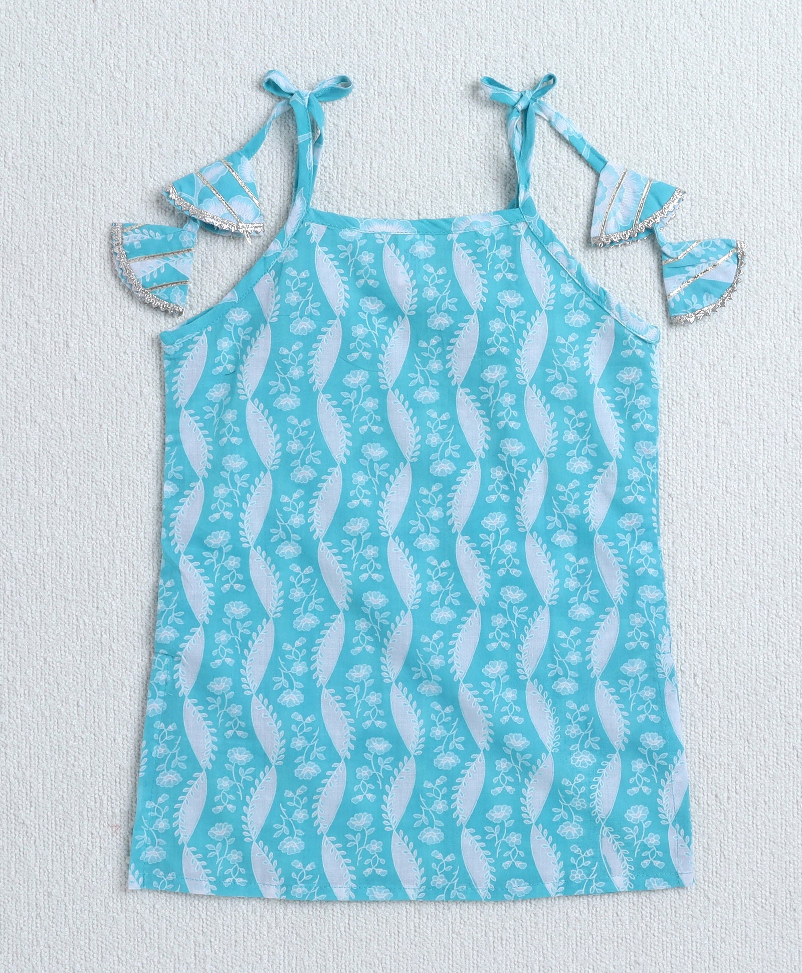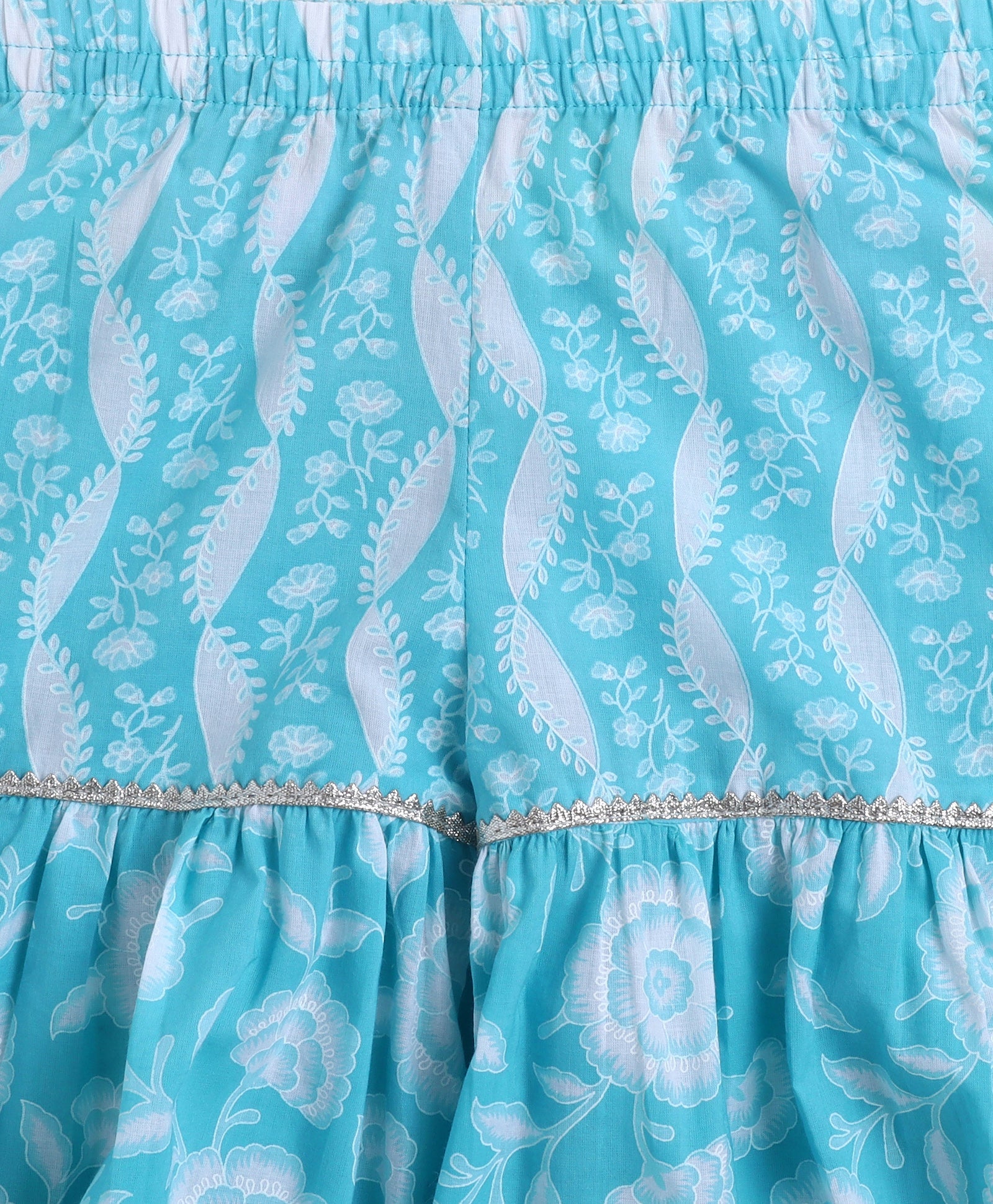 The Magic Wand Cambric Cotton Shoulder Tie Ups AII Over Printed Kurta and Sharara Set- Blue