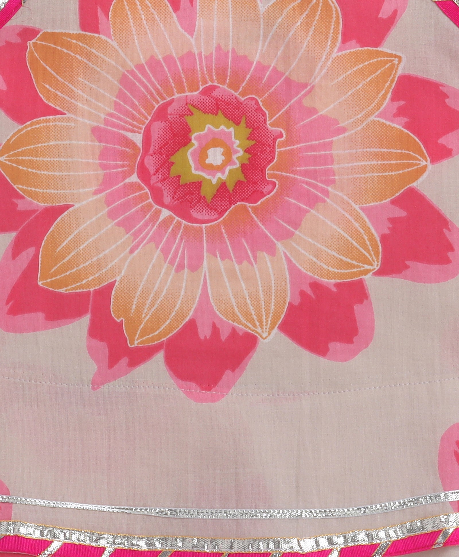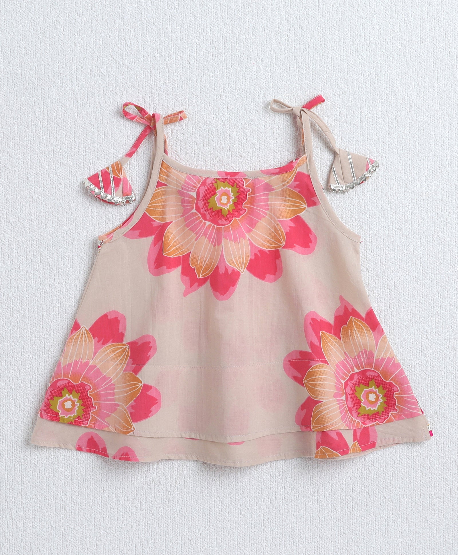 The Magic Wand Cambric Cotton Shoulder Tie Ups Floral Printed Tent Top and Dhoti Set-Beige