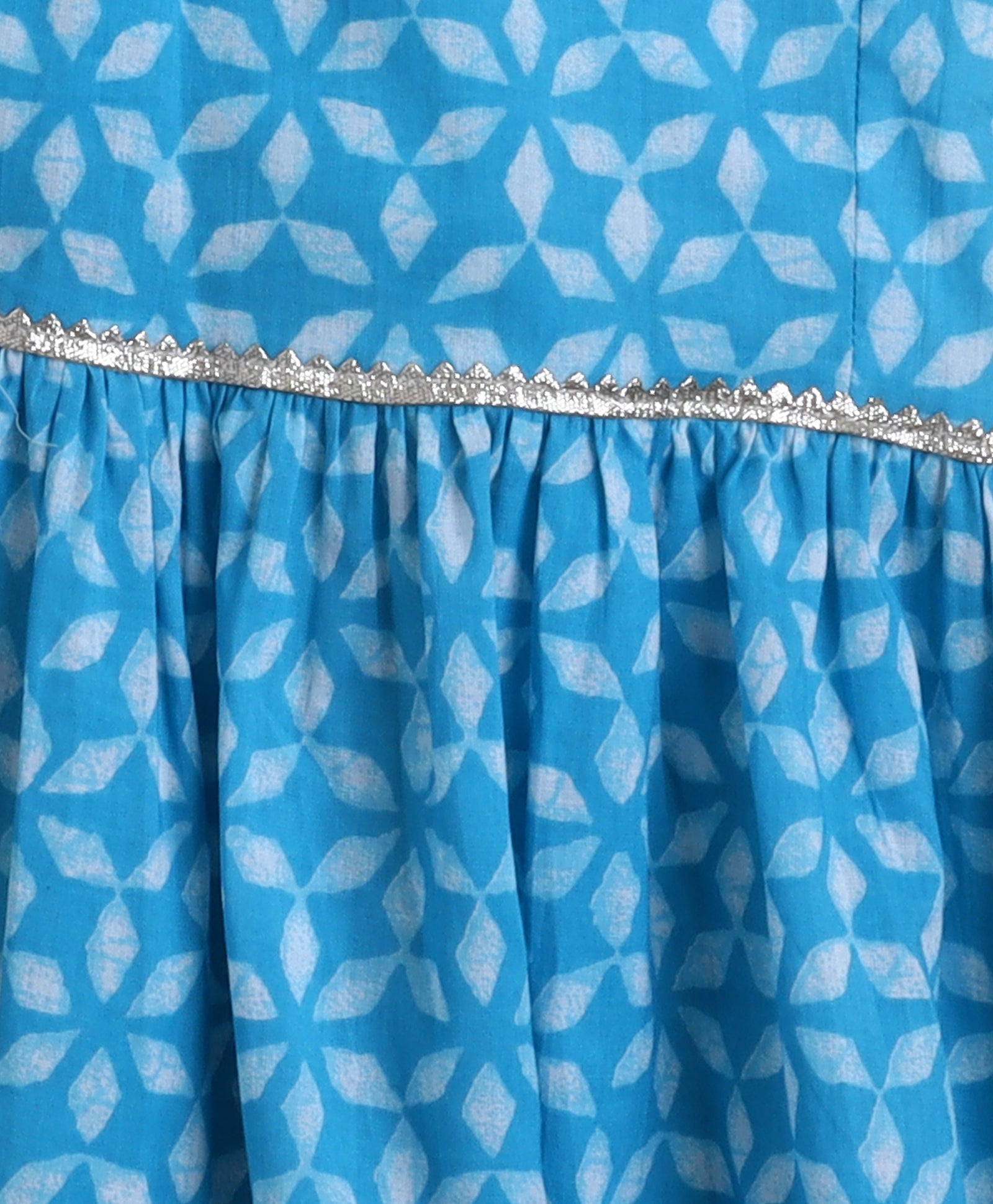 The Magic Wand Cambric Cotton woven Shoulder Tie Ups Printed Kurta Sharara Dupatta Set- Blue