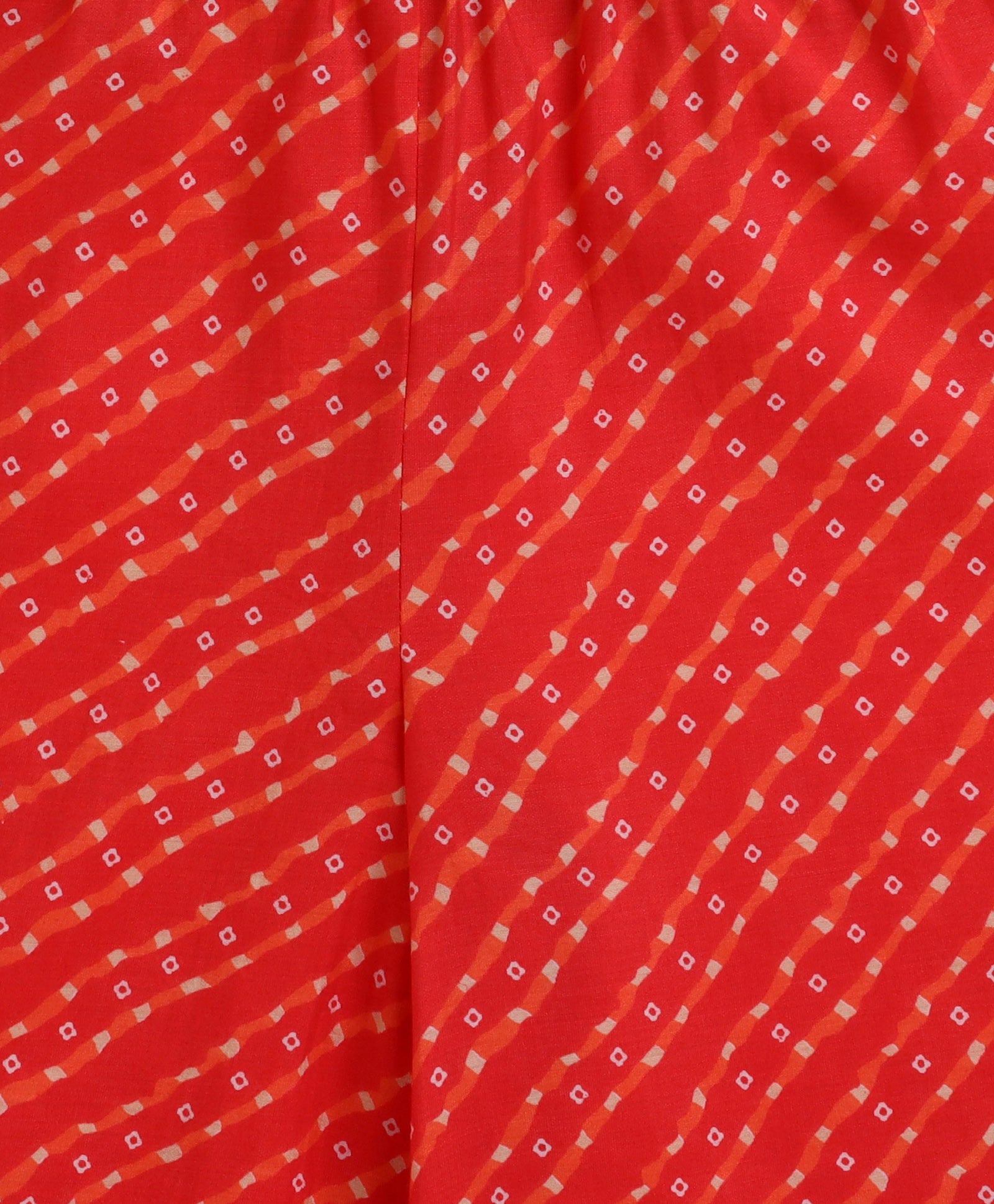 The Magic Wand Cambric Cotton Sleeveless Leheriya Printed Kurta and Plazzo Set - Red