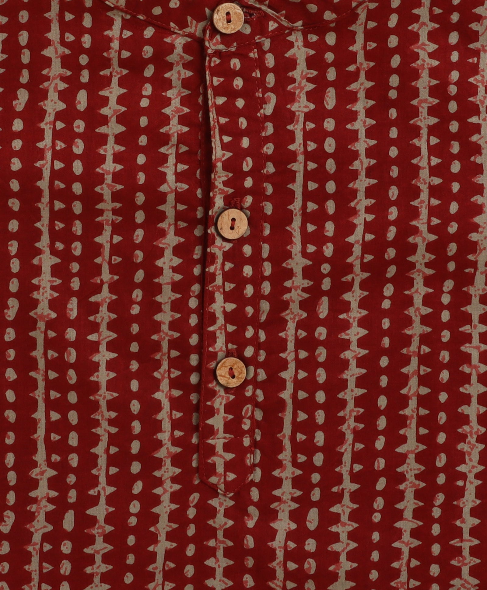 The Magic Wand Cambric Cotton woven Full Sleeves Printed Kurta Pyjama Set - Maroon