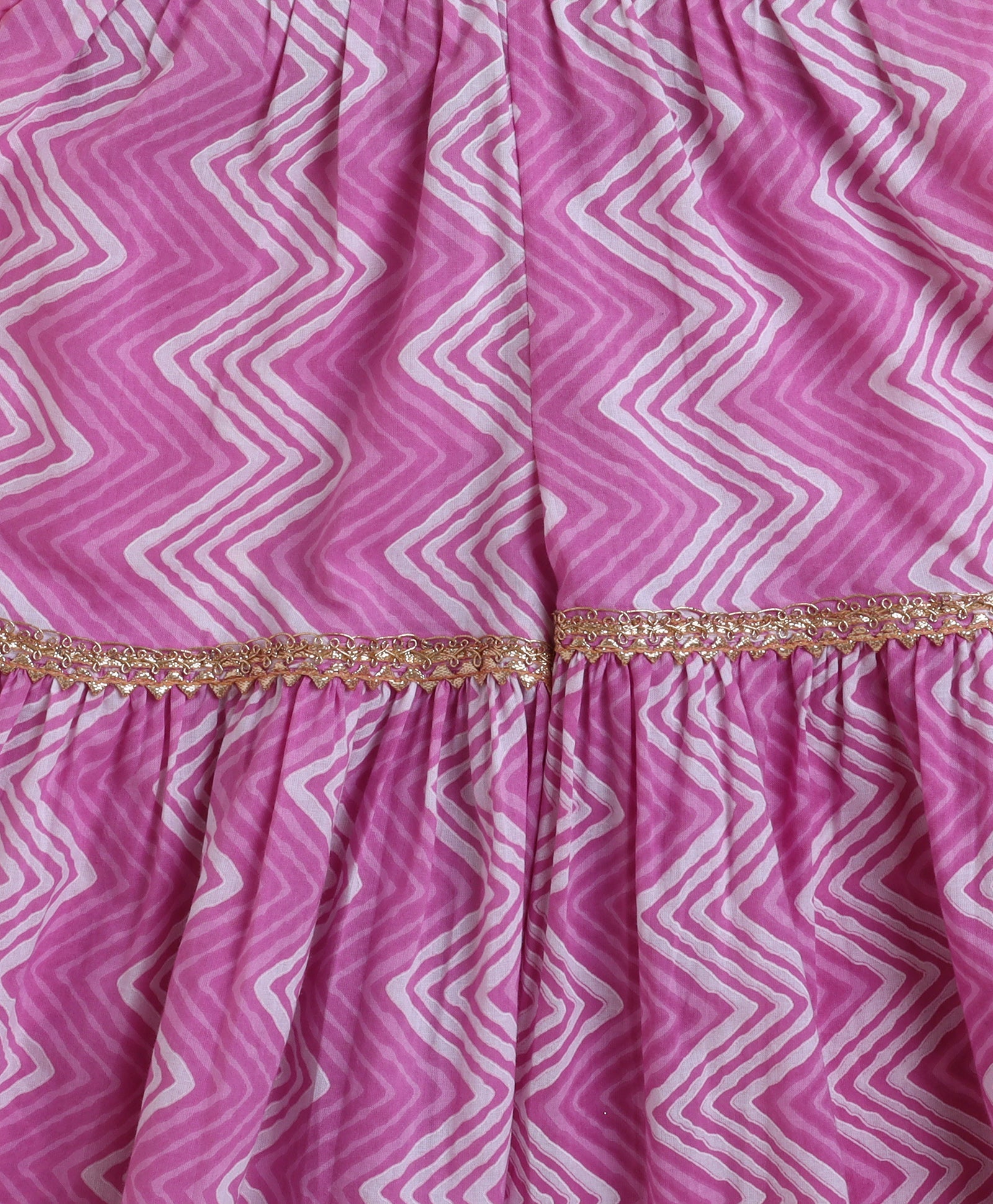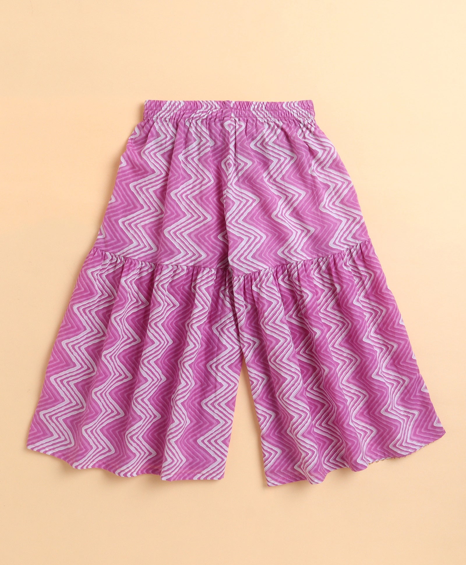 The Magic Wand Cambric Printed Aline Sleeveless Kurta Sharara Dupatta Set - Levender