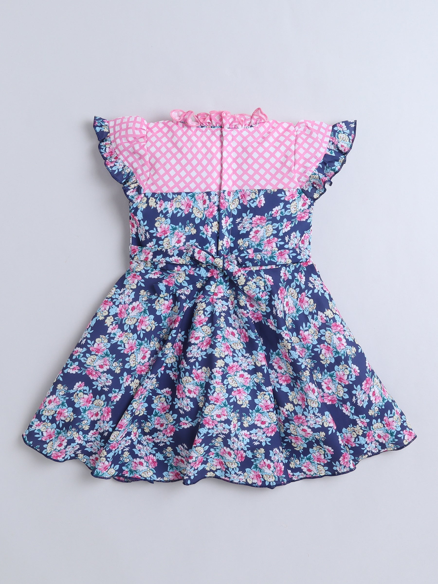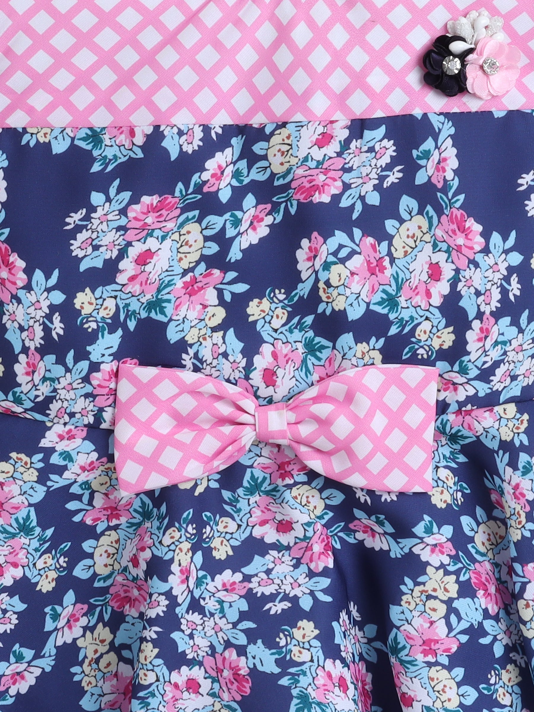 The Magic Wand Cap Sleeves Floral Printed Bow Applique Dress -Pink