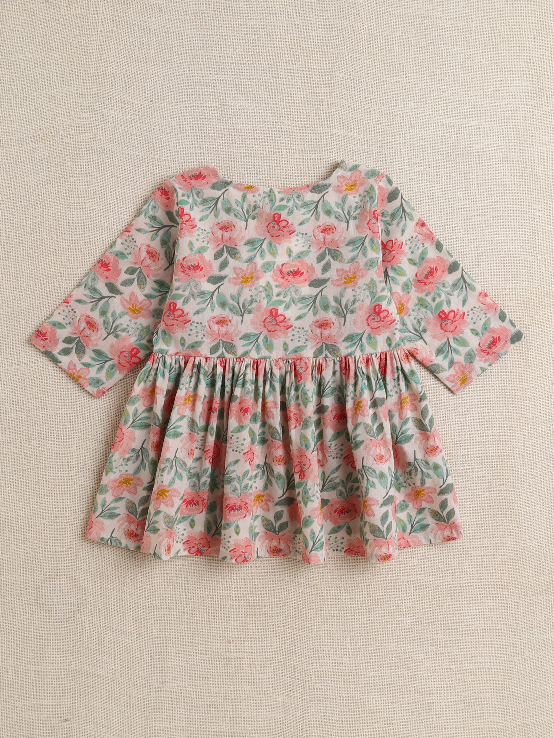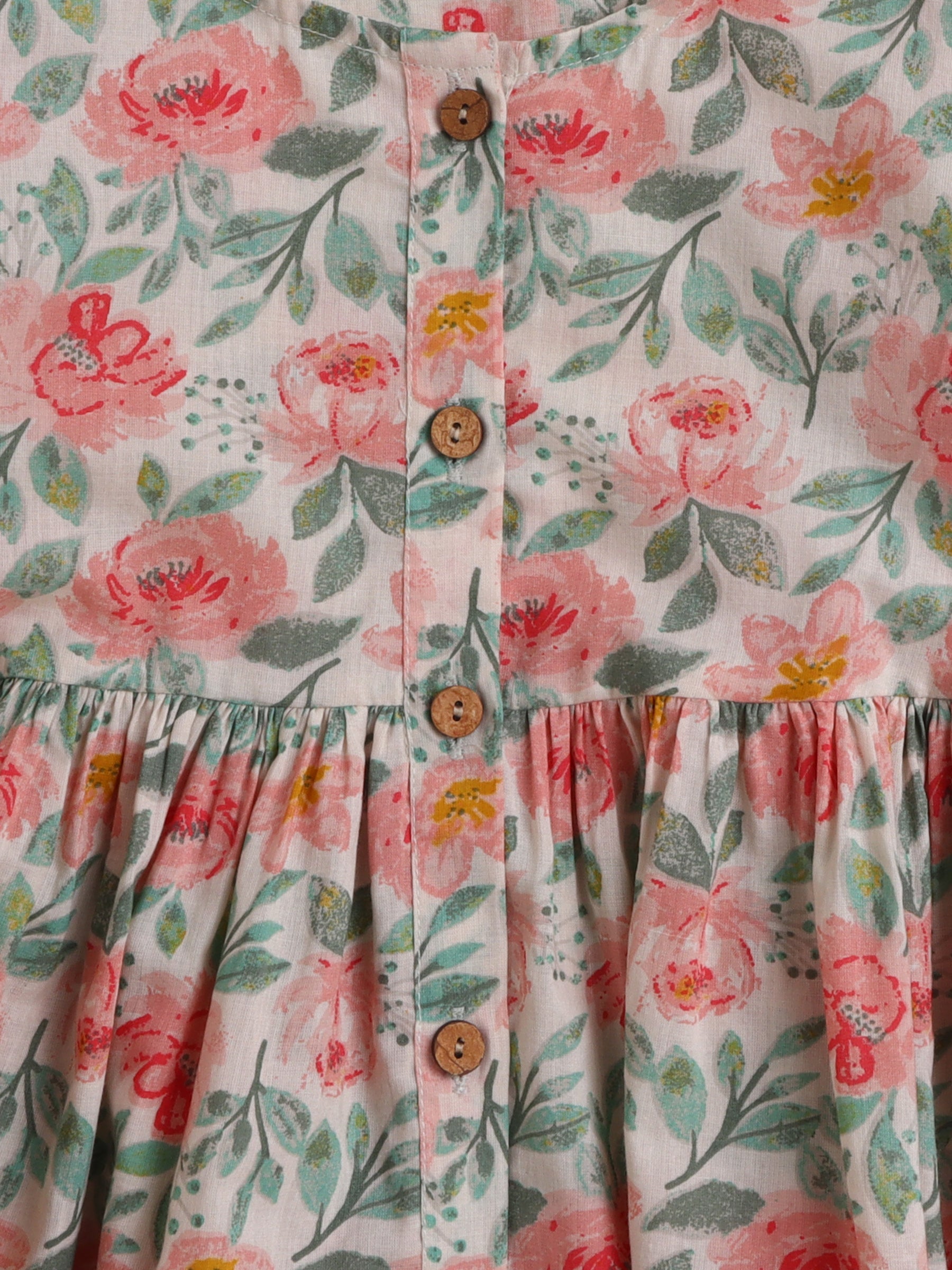 The Magic Wand Cotton Elbow Sleeves All Over Printed Top & Pant Set-Peach