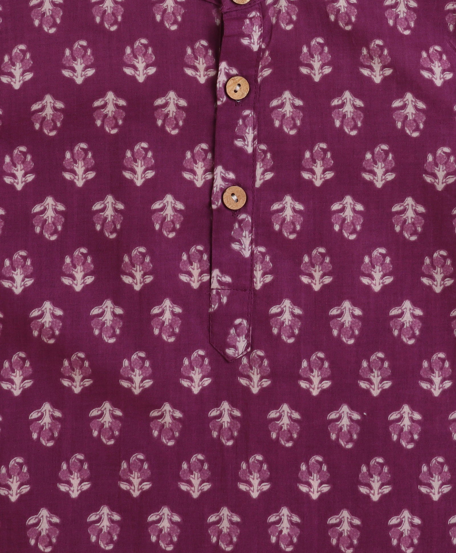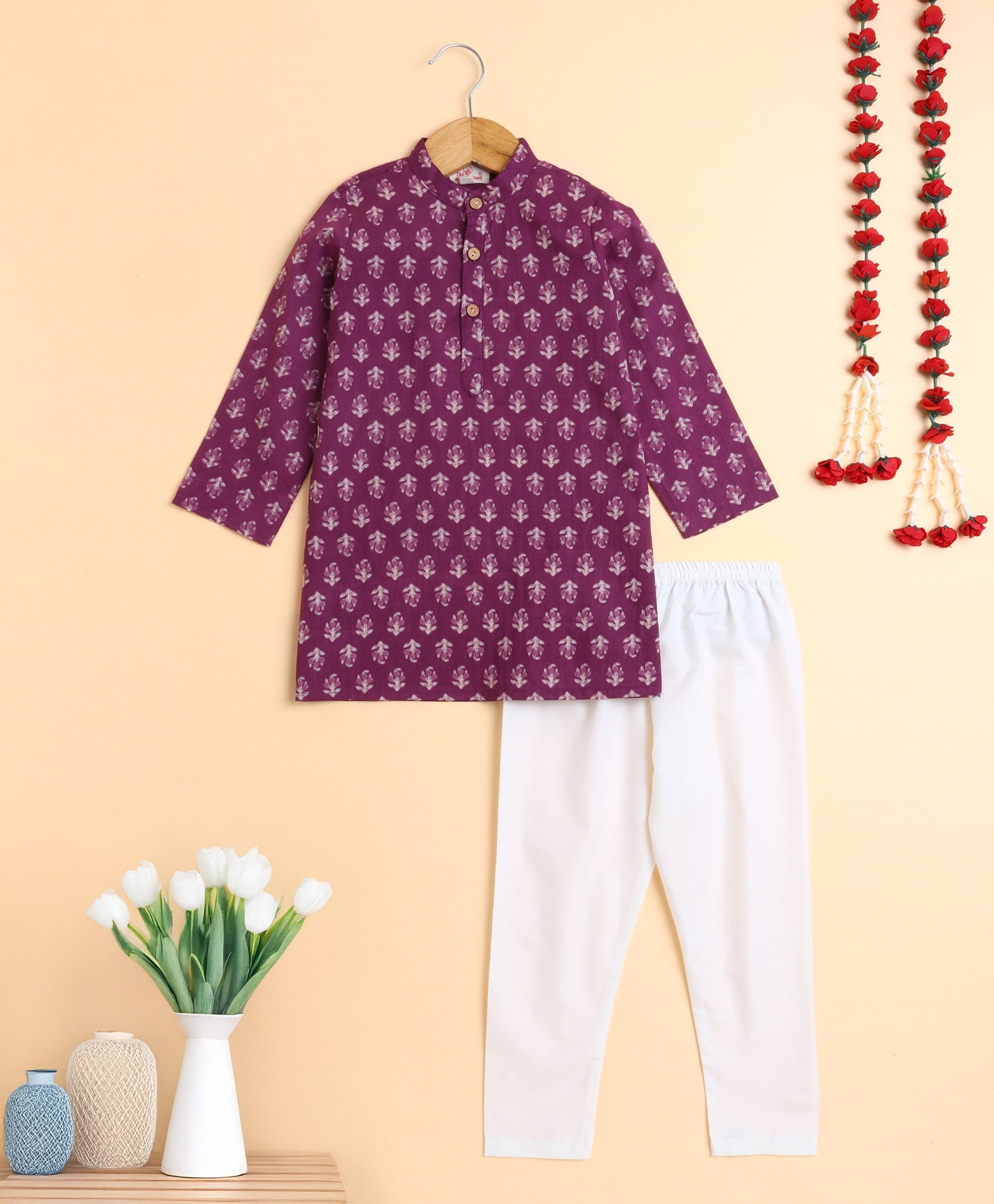 The Magic Wand Cotton Floral Printed Full Sleeves Kurta with Pyjama Set - Purple