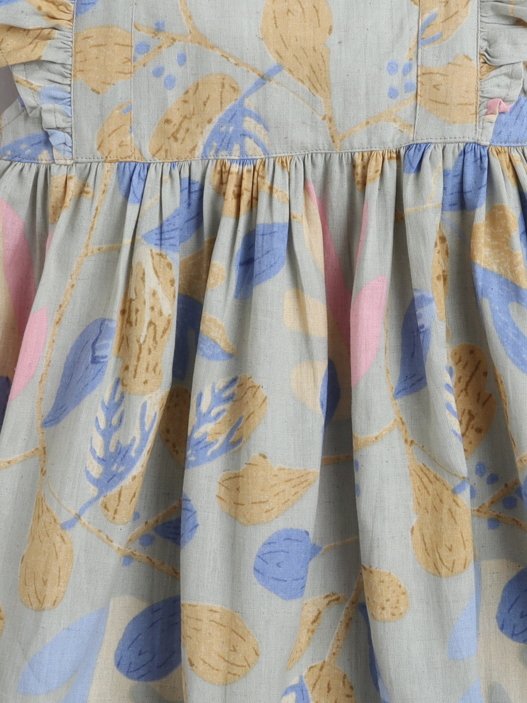 The Magic Wand Cotton Frill Sleeve Floral Printed Dress - Green