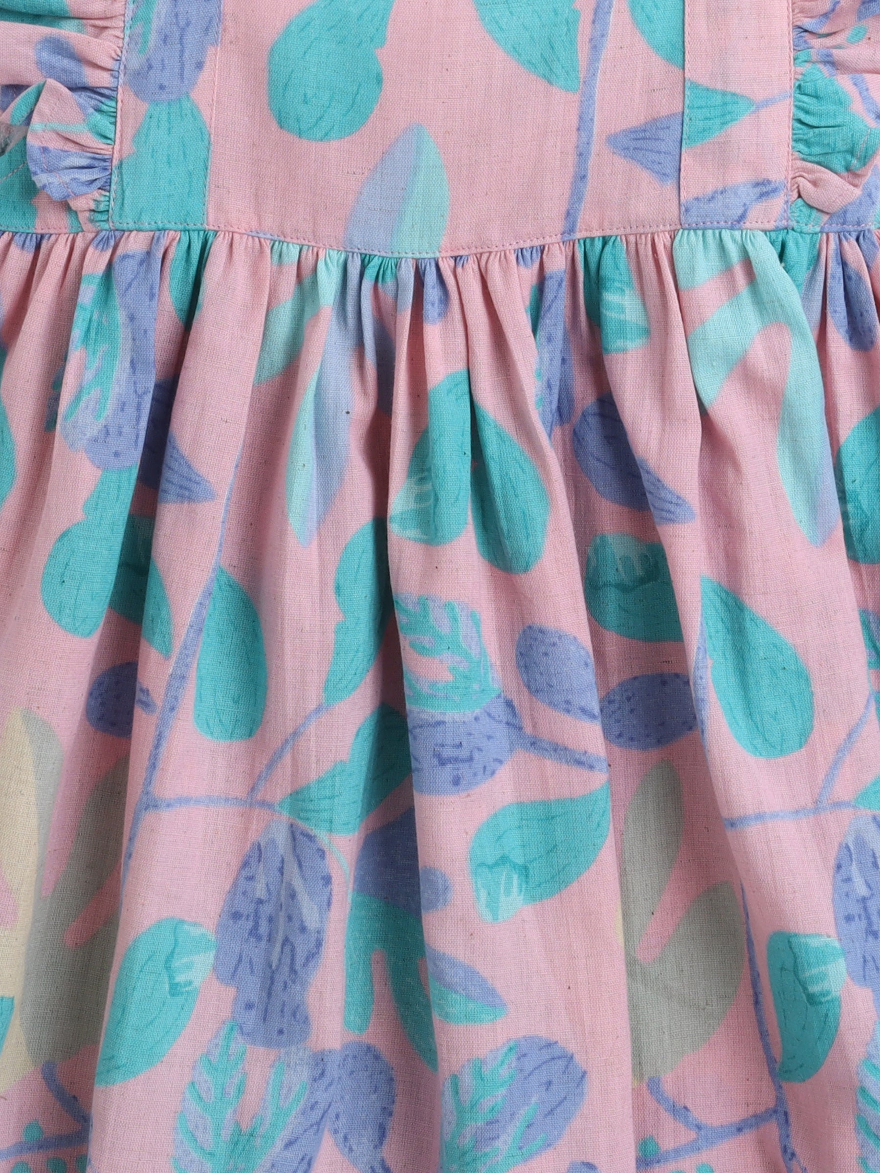 The Magic Wand Cotton Frill Sleeve Floral Printed Dress - Pink