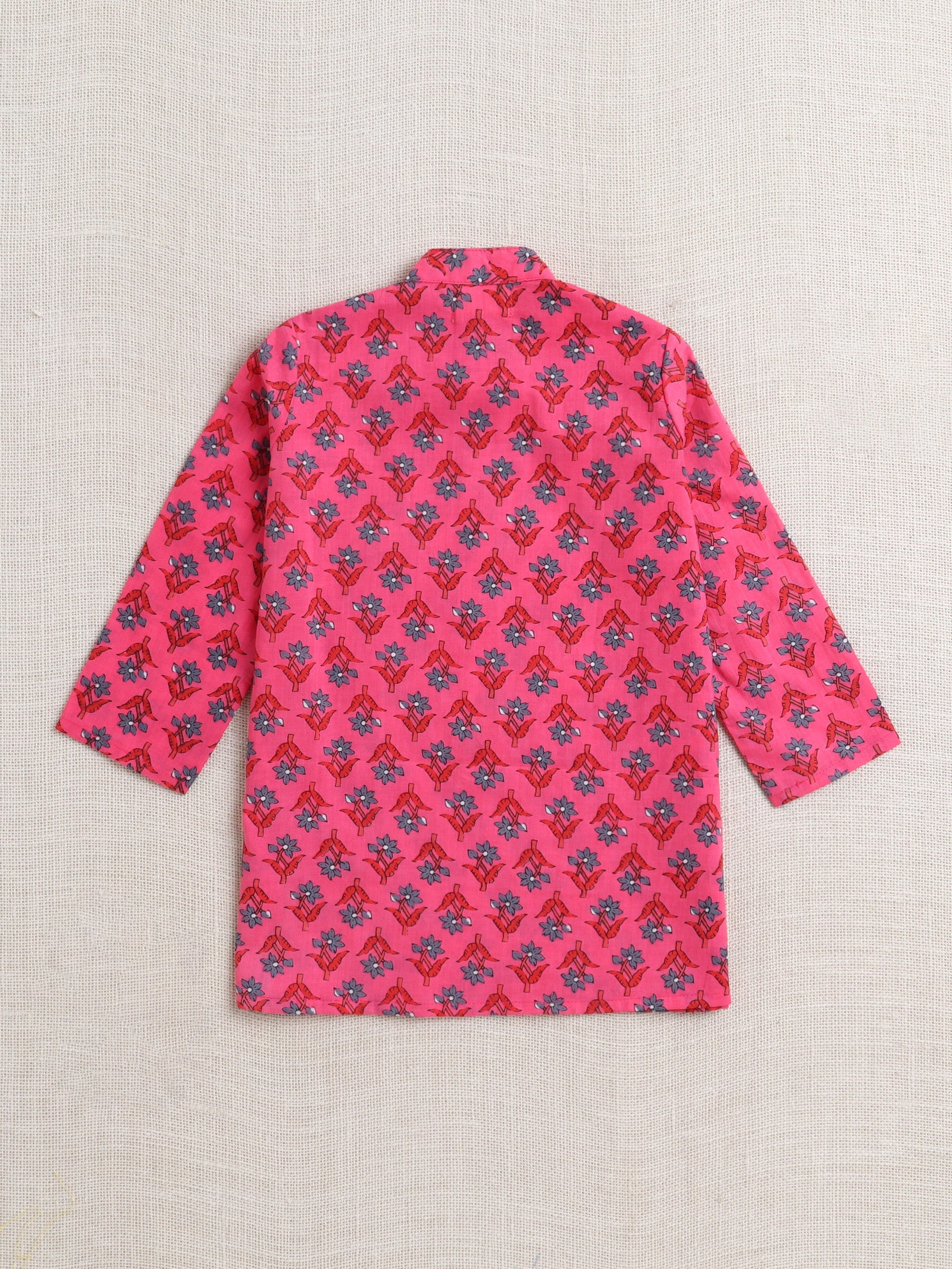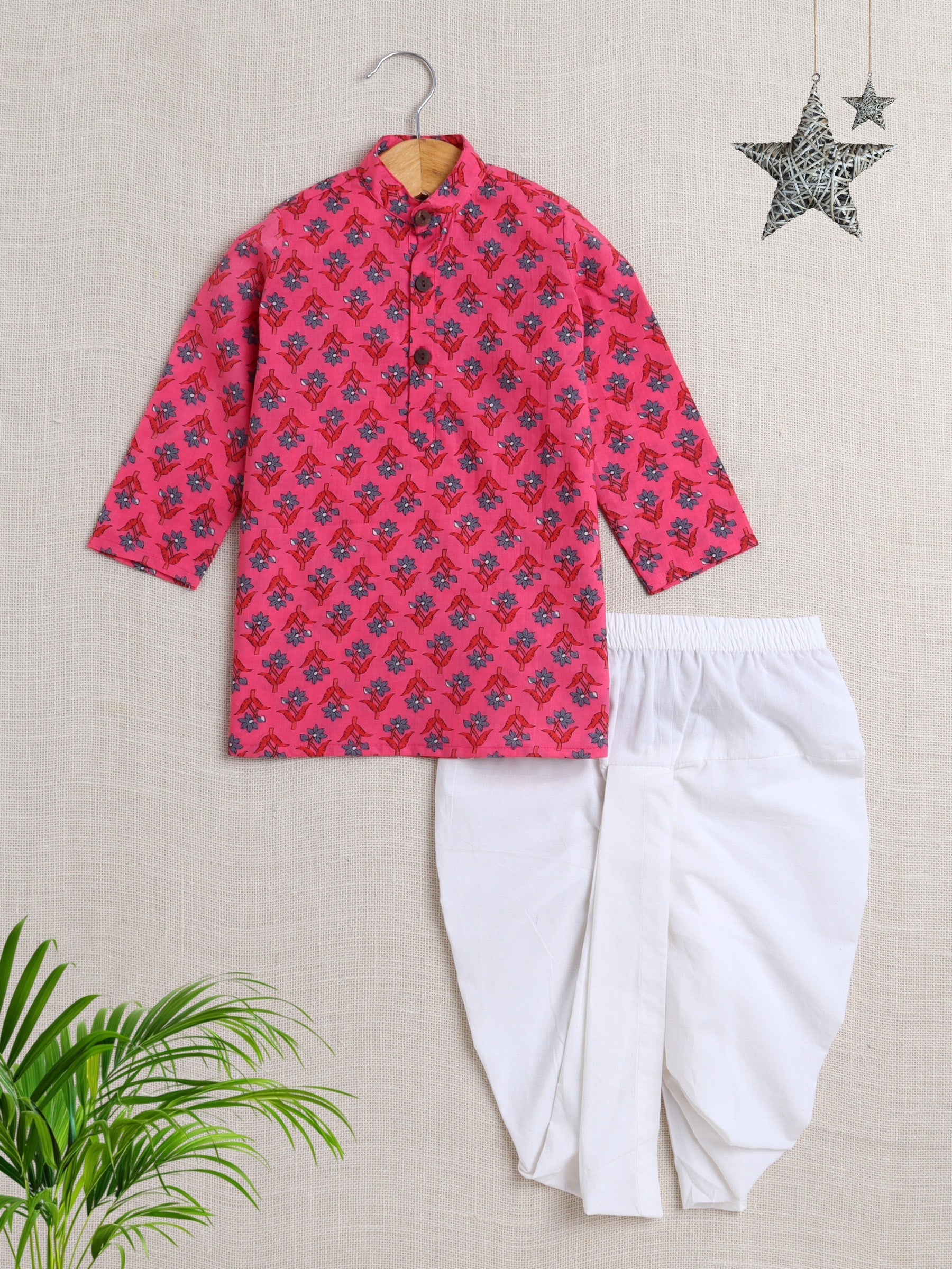 The Magic Wand Cotton Full Sleeve All Over Printed Kurta and Dhoti Set Fuchsia