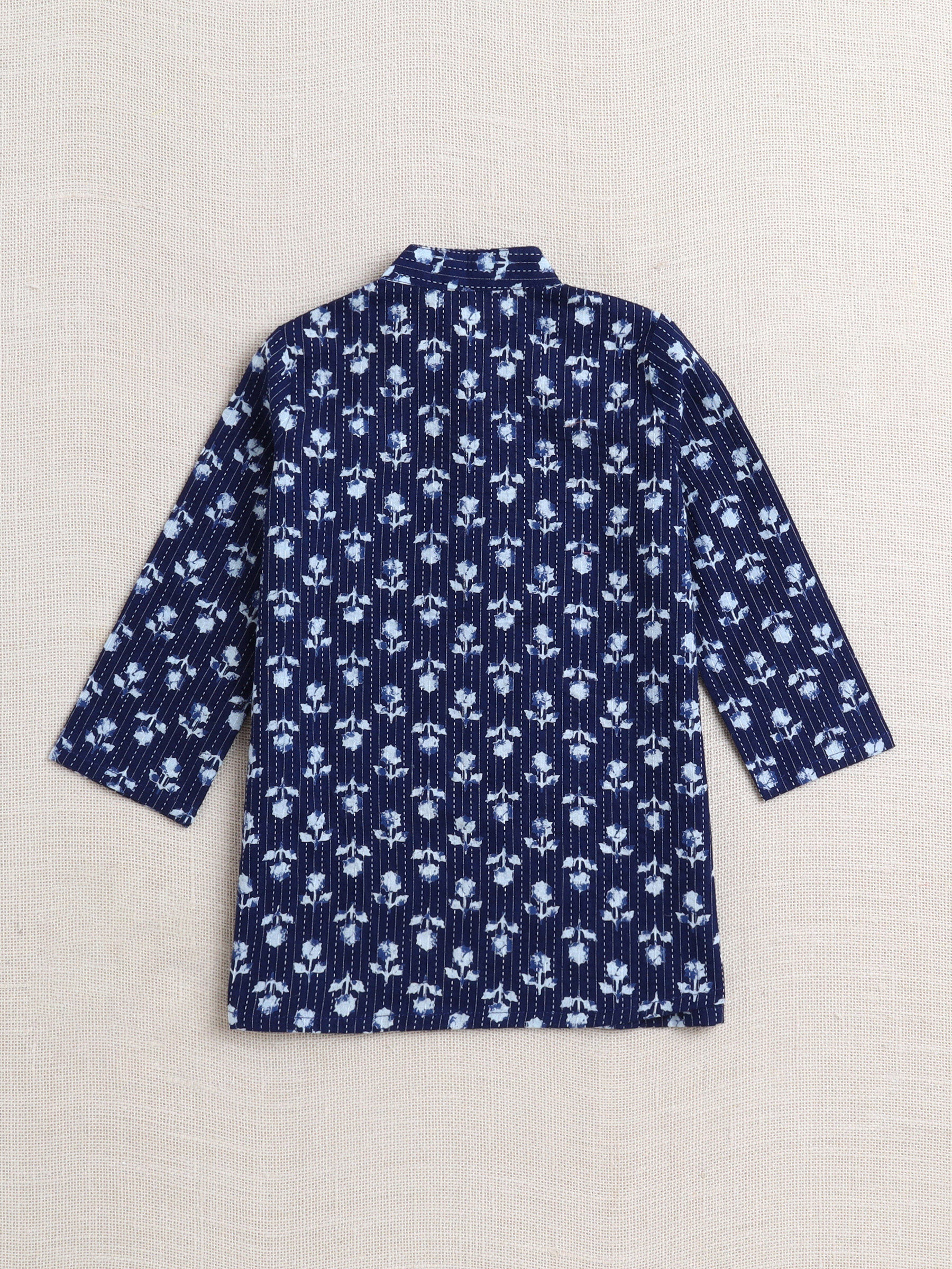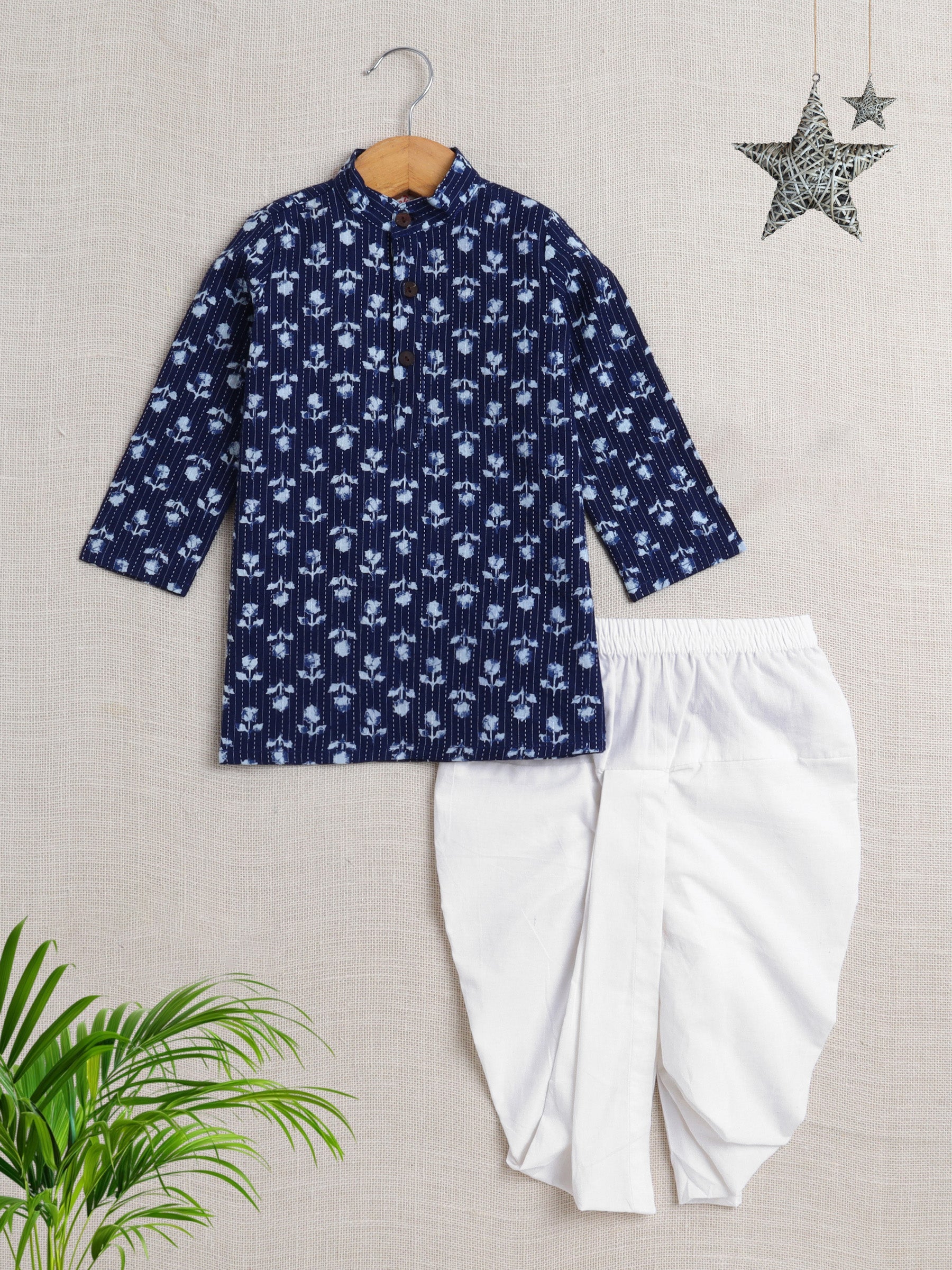 The Magic Wand Cotton Full Sleeve All Over Printed Kurta and Dhoti Set Navy Blue