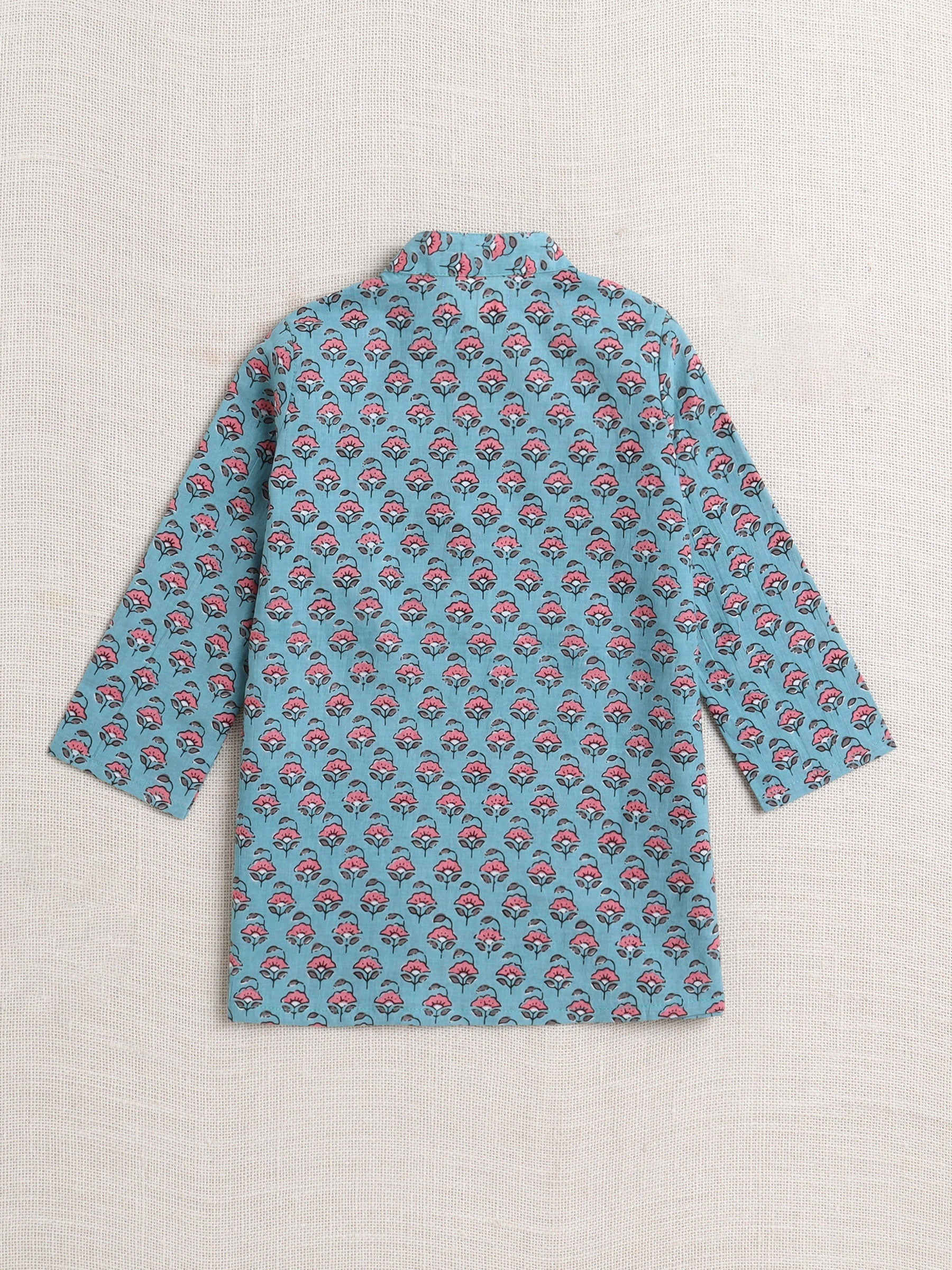 The Magic Wand Cotton Full Sleeve All Over Printed Kurta and Dhoti Set-Teal