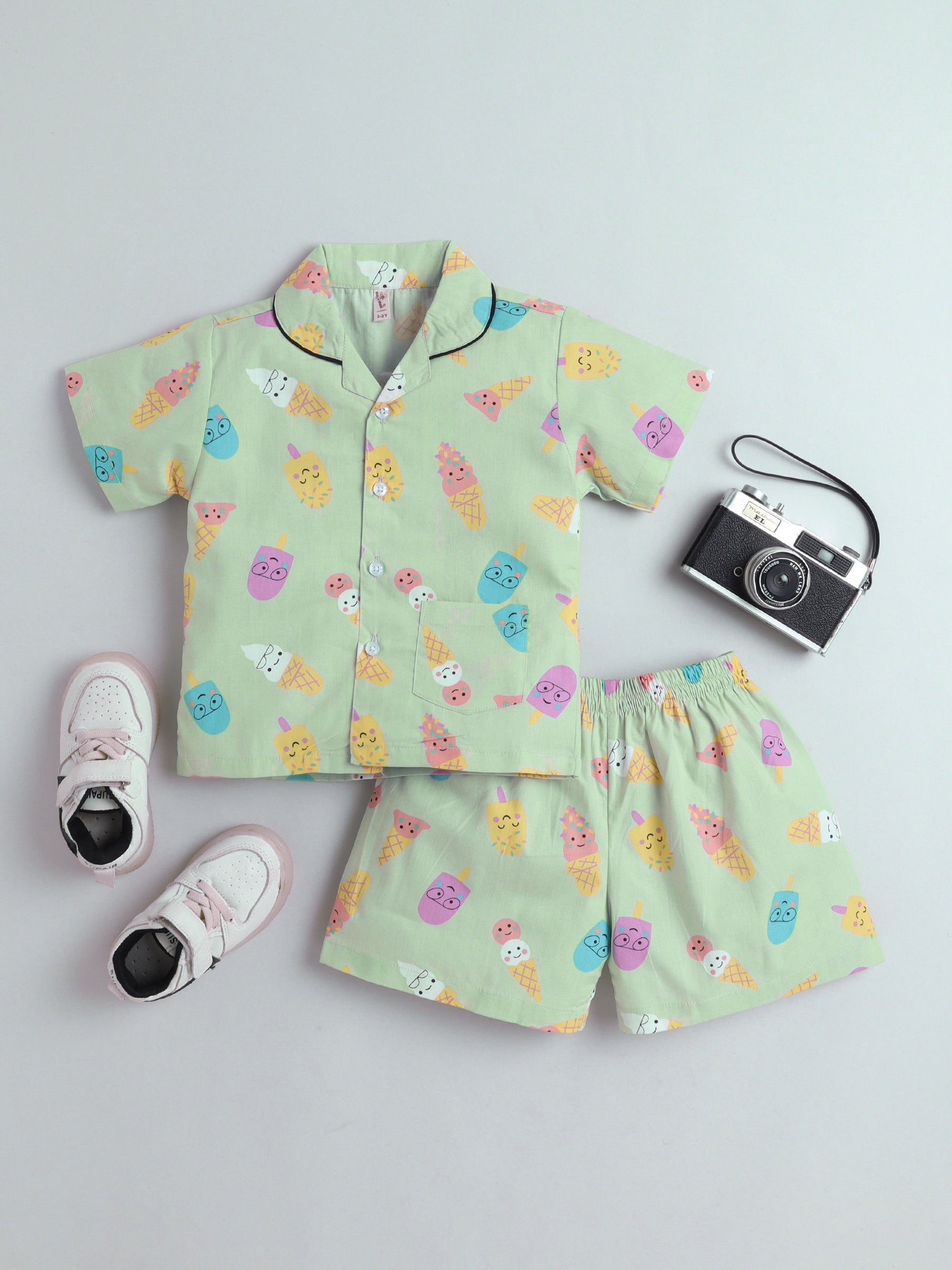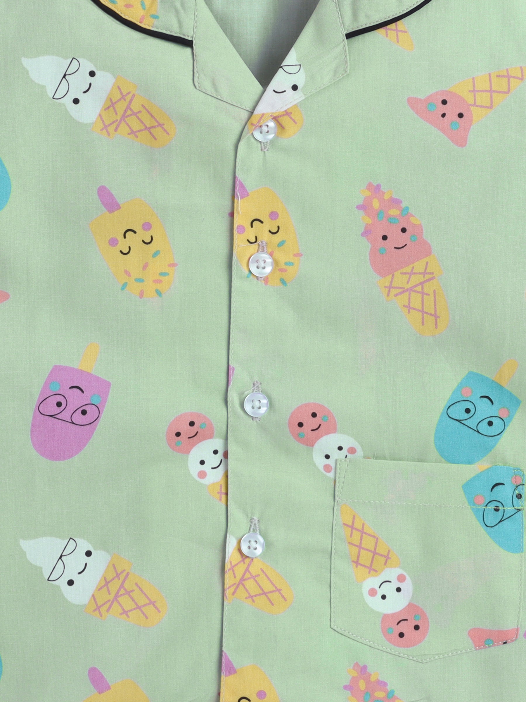 The Magic Wand Cotton Half Sleeve Candy Printed Night Suit Set Green