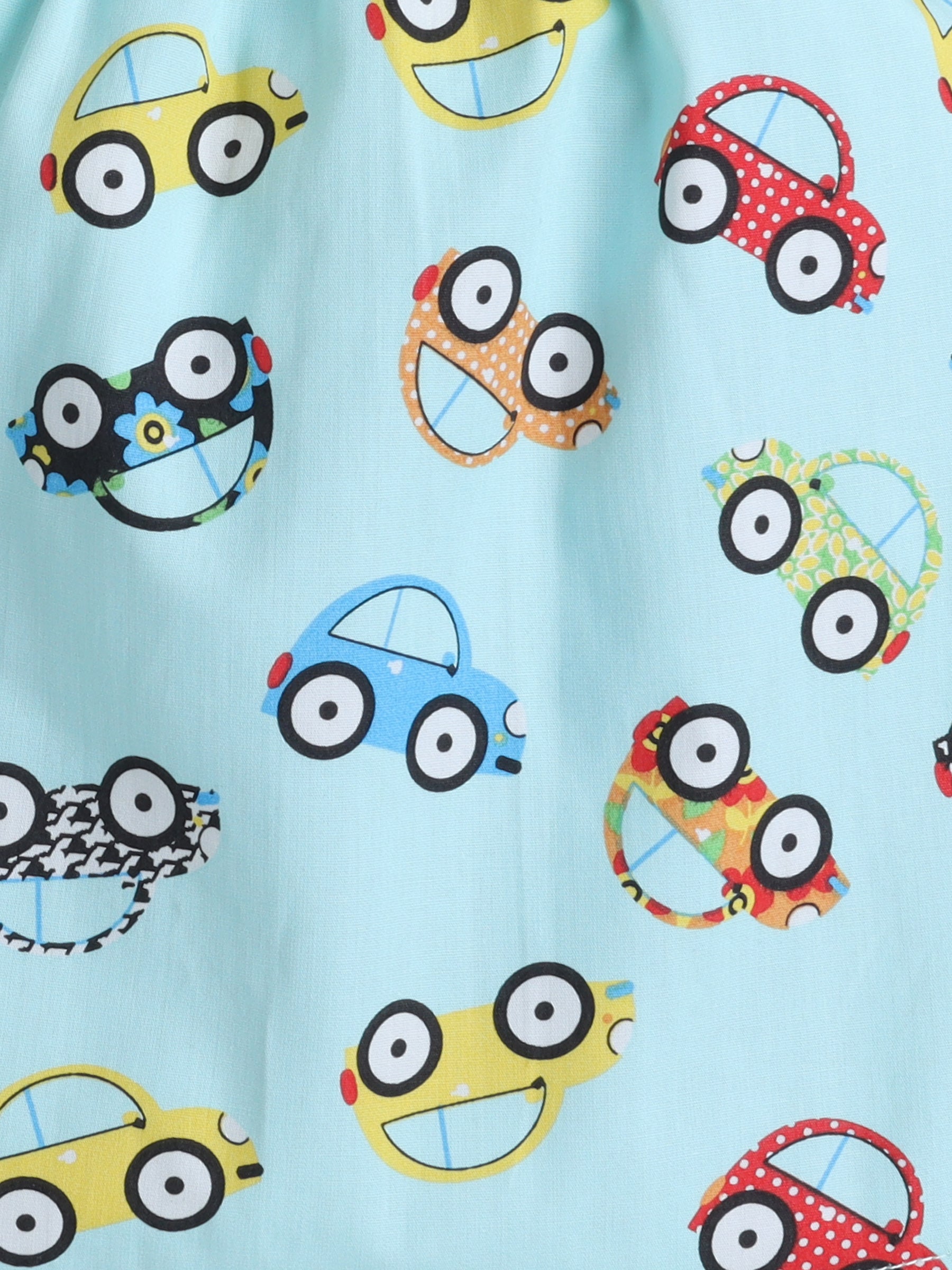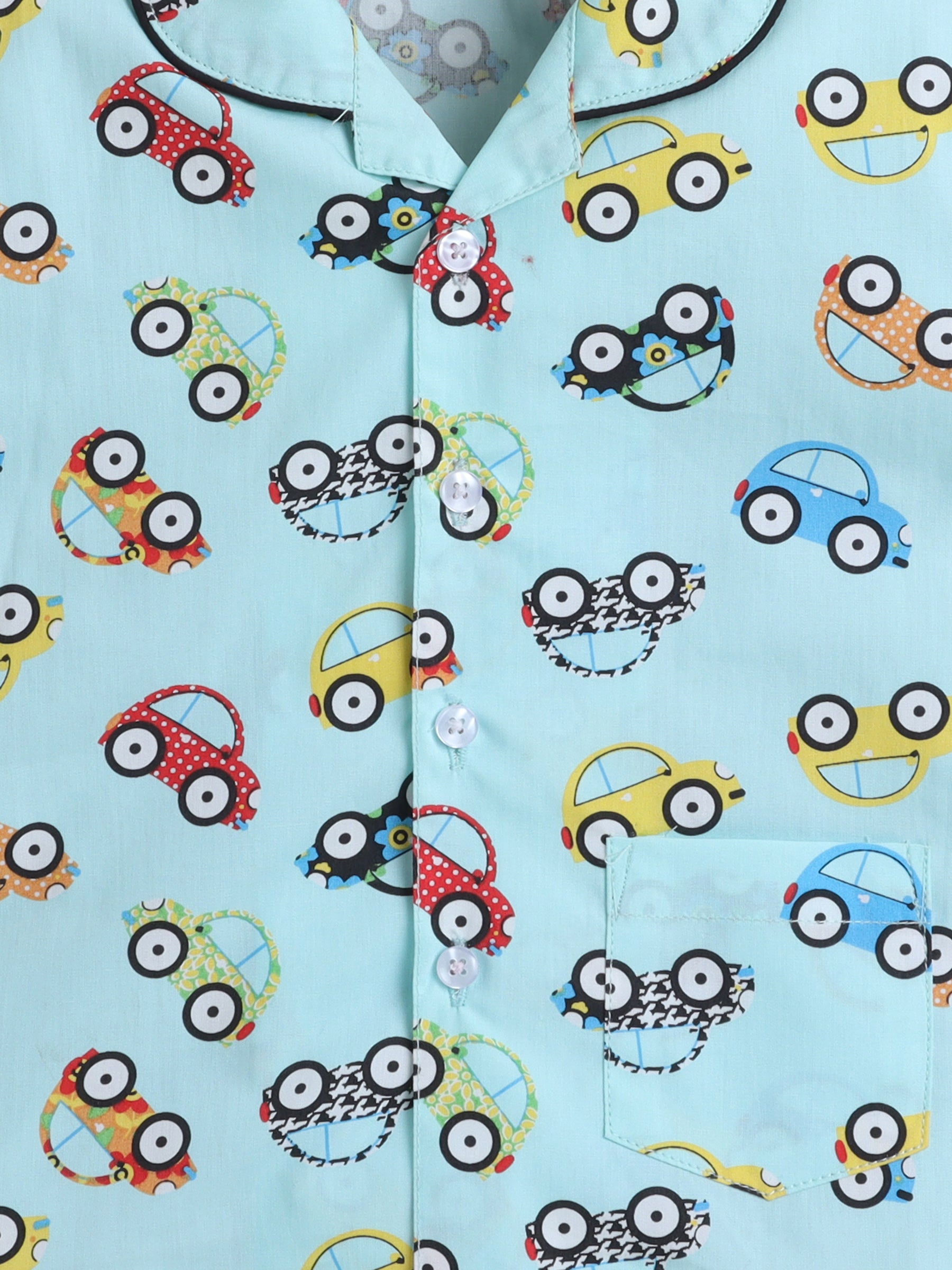 The Magic Wand Cotton Half Sleeve Car Printed Night Suit Set Blue