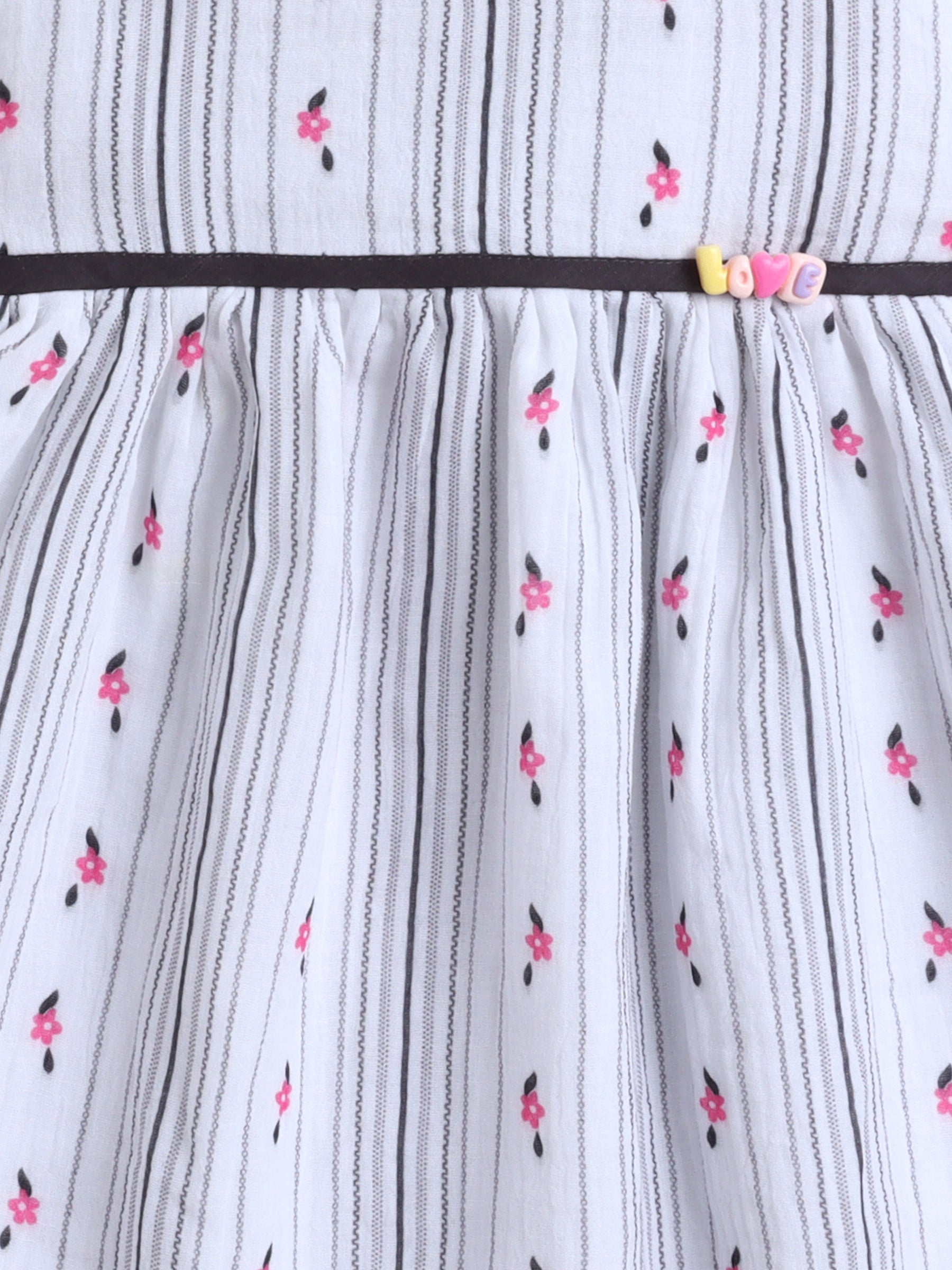 Cotton Sleeveless All Over Printed Fit & Flare Dress- Off White