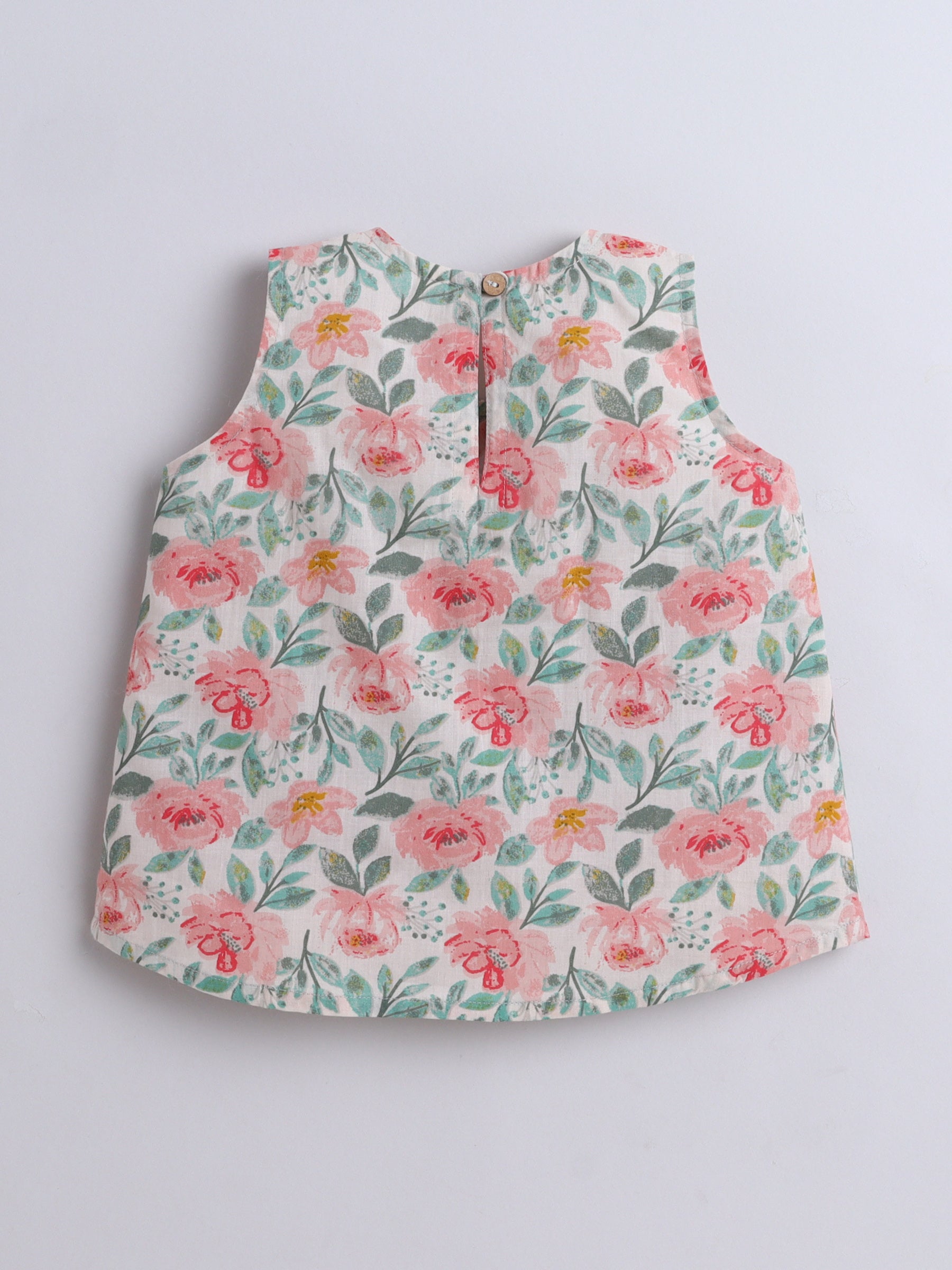The Magic Wand Cotton Sleeveless All Over Printed Top & Shorts Set-Peach