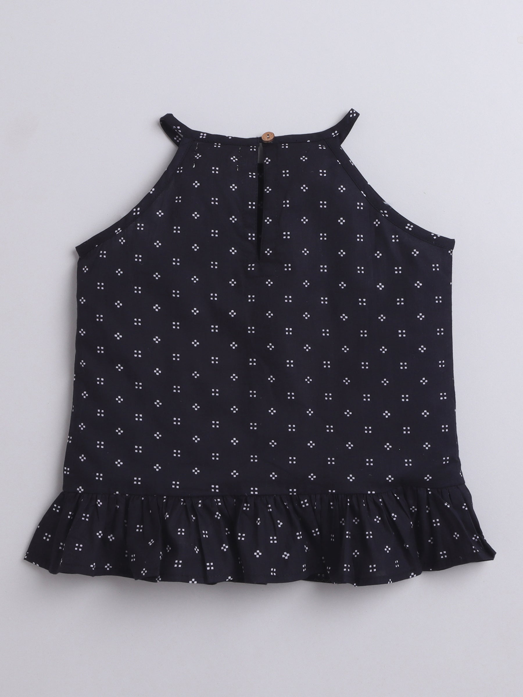 The Magic Wand Cotton Sleeveless Incut Style Floral Printed Top Black