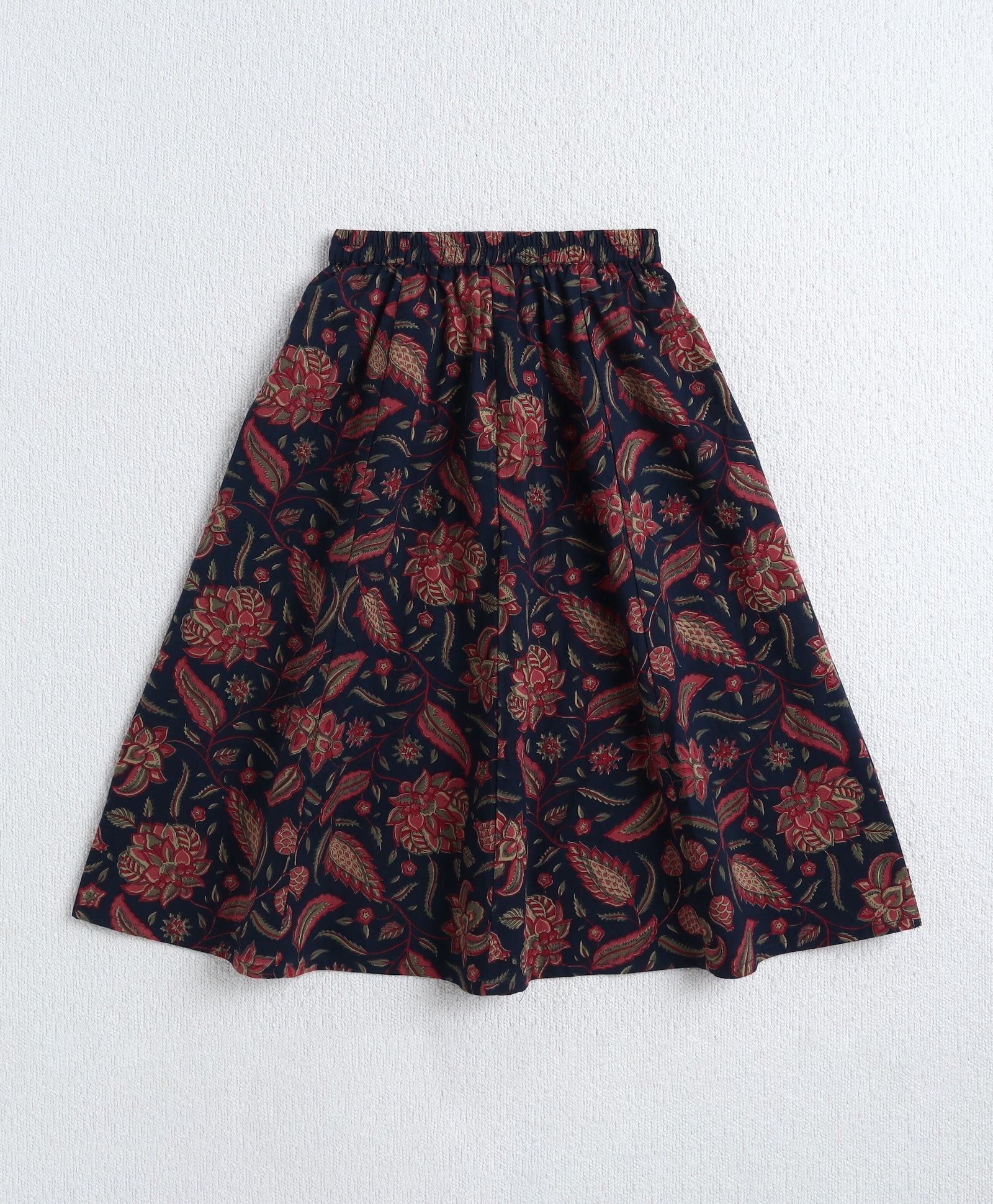 The Magic Wand Cotton Woven Elbow Sleeves Floral printed Lace Detailed Kurti & Lehenga Set with Dupatta- Navy Blue