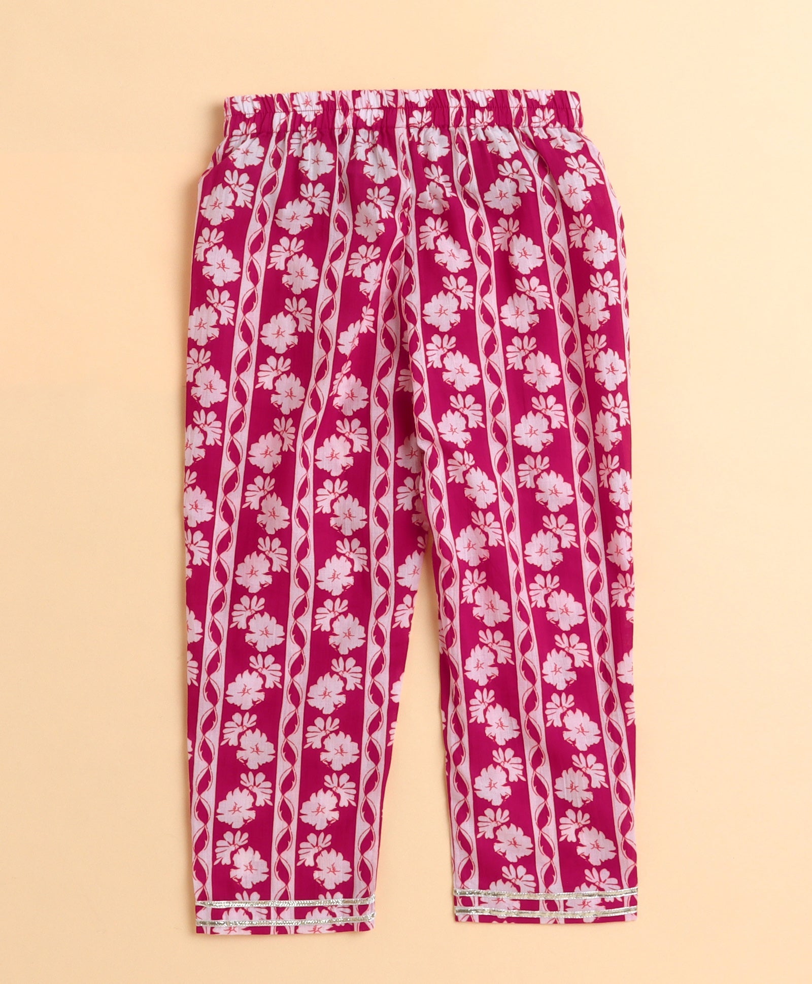 The Magic Wand Cotton Woven Floral Printed Three Fourth Sleeves Kurti Salwar and Dupatta Set- Fuchisa