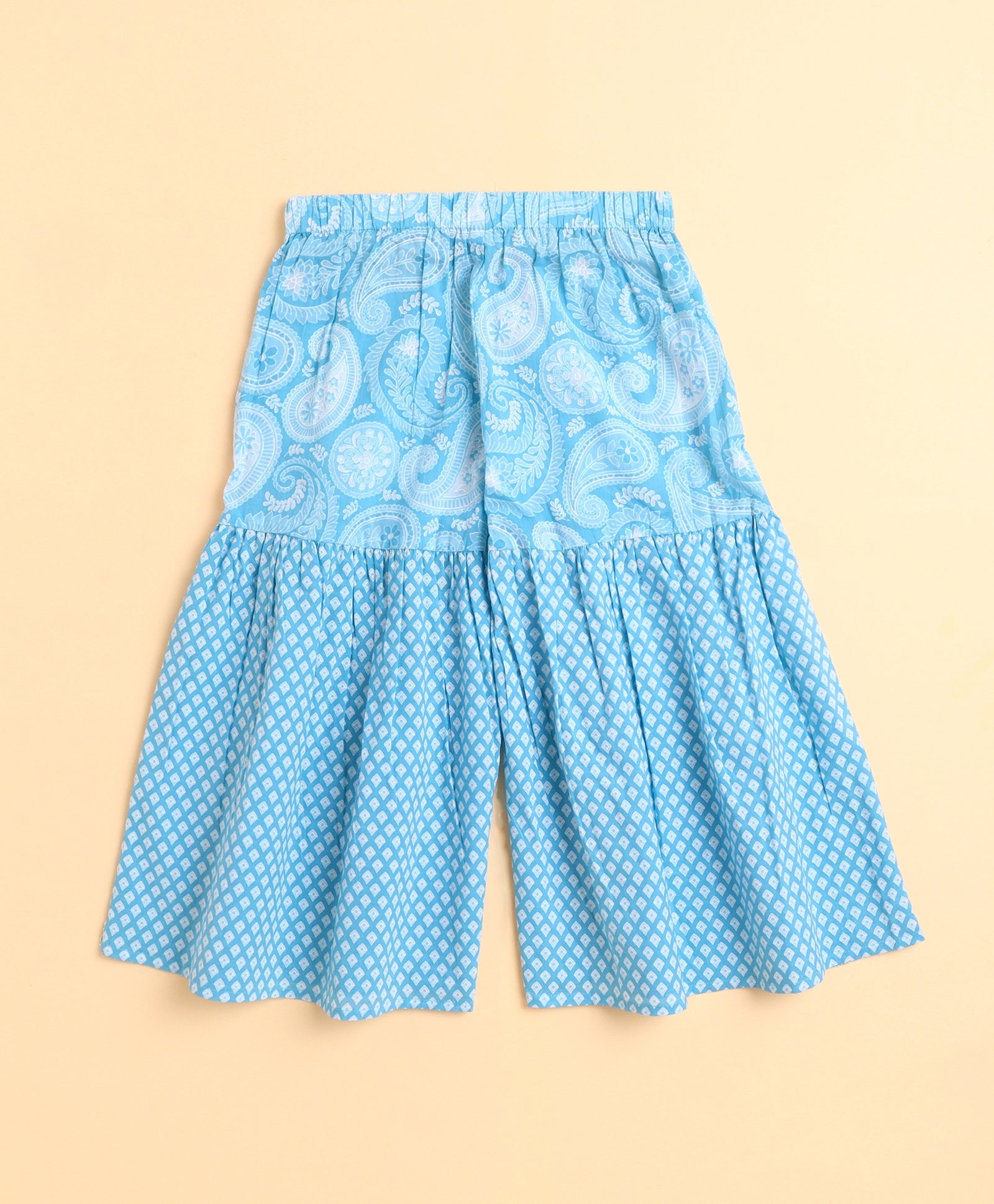 The Magic Wand Cotton Woven Floral Printed Three Fouth Sleeves Lace Embellished Kurta and Sharara Set - Blue