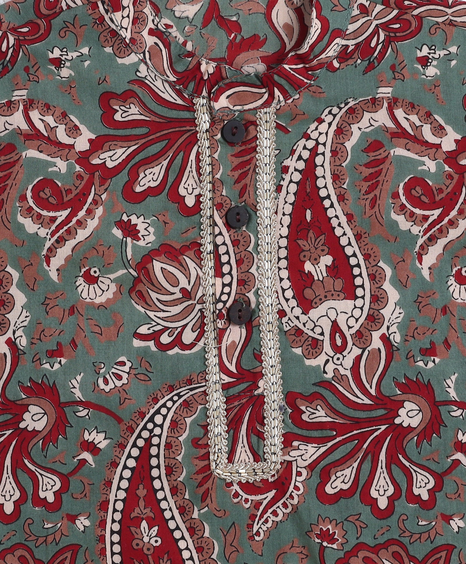 The Magic Wand Cotton Woven Full Sleeves AII Over Printed Kurta and Dhoti Set- Green