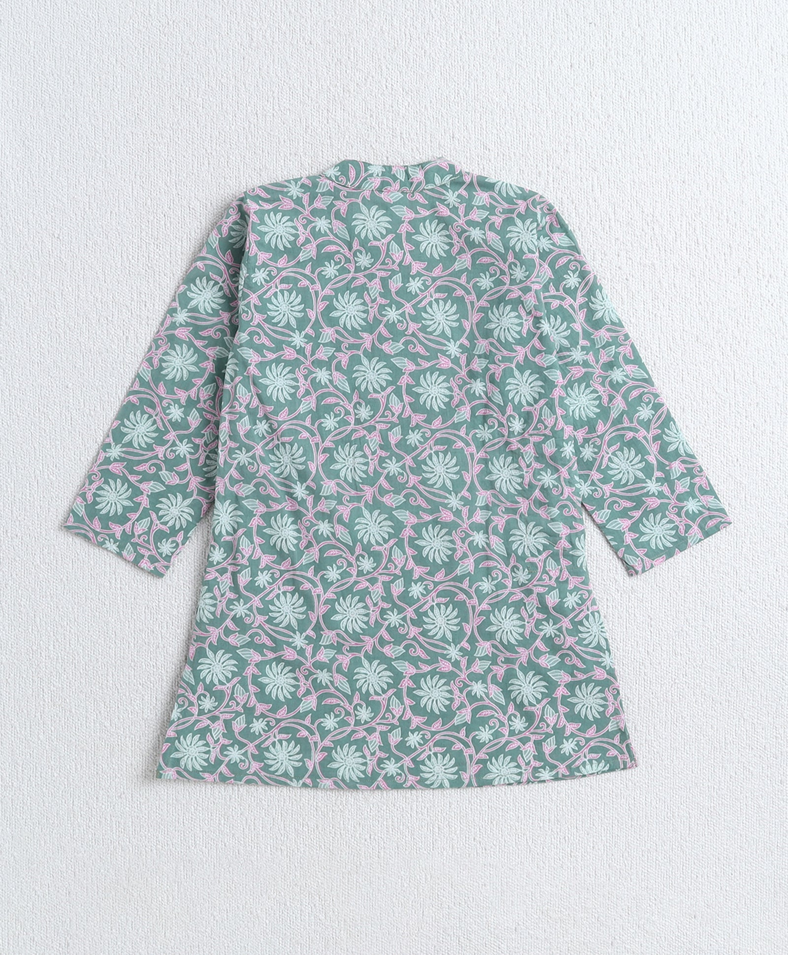 The-Magic-Wand-Cotton-Woven-Full-Sleeves-Floral-Printed-Kurta-&-Pyjama-with-Jacket-Set--Green