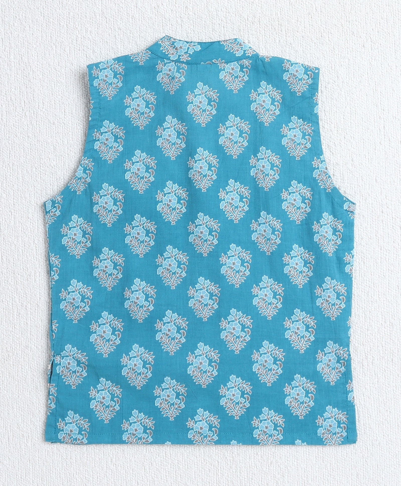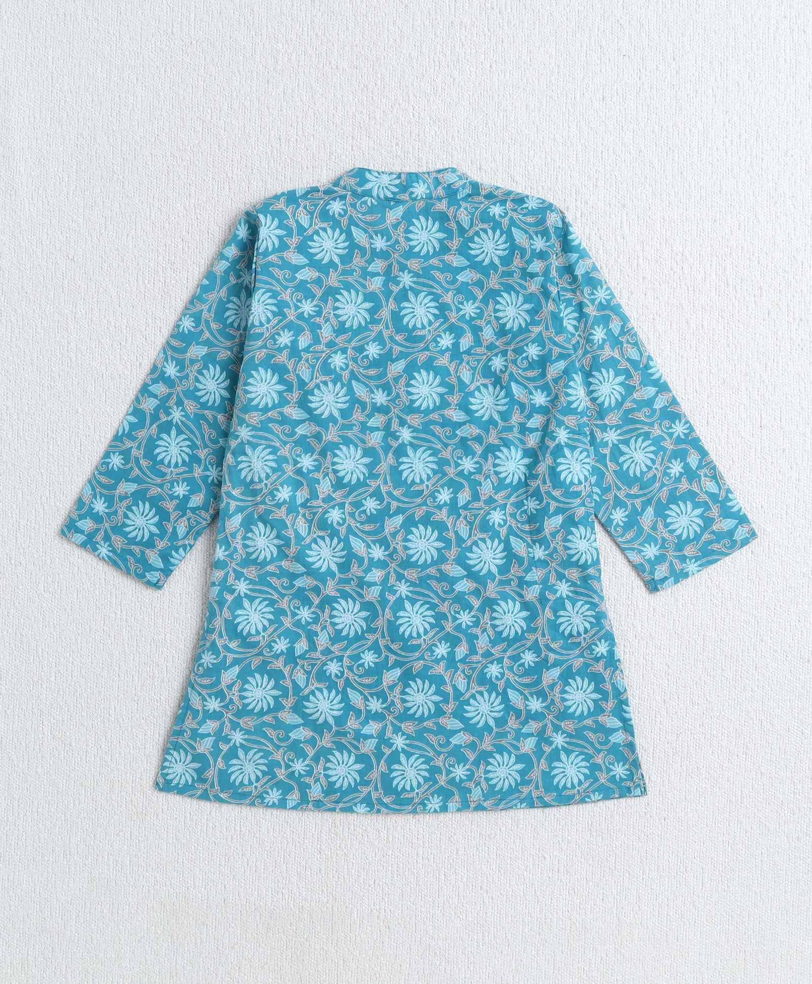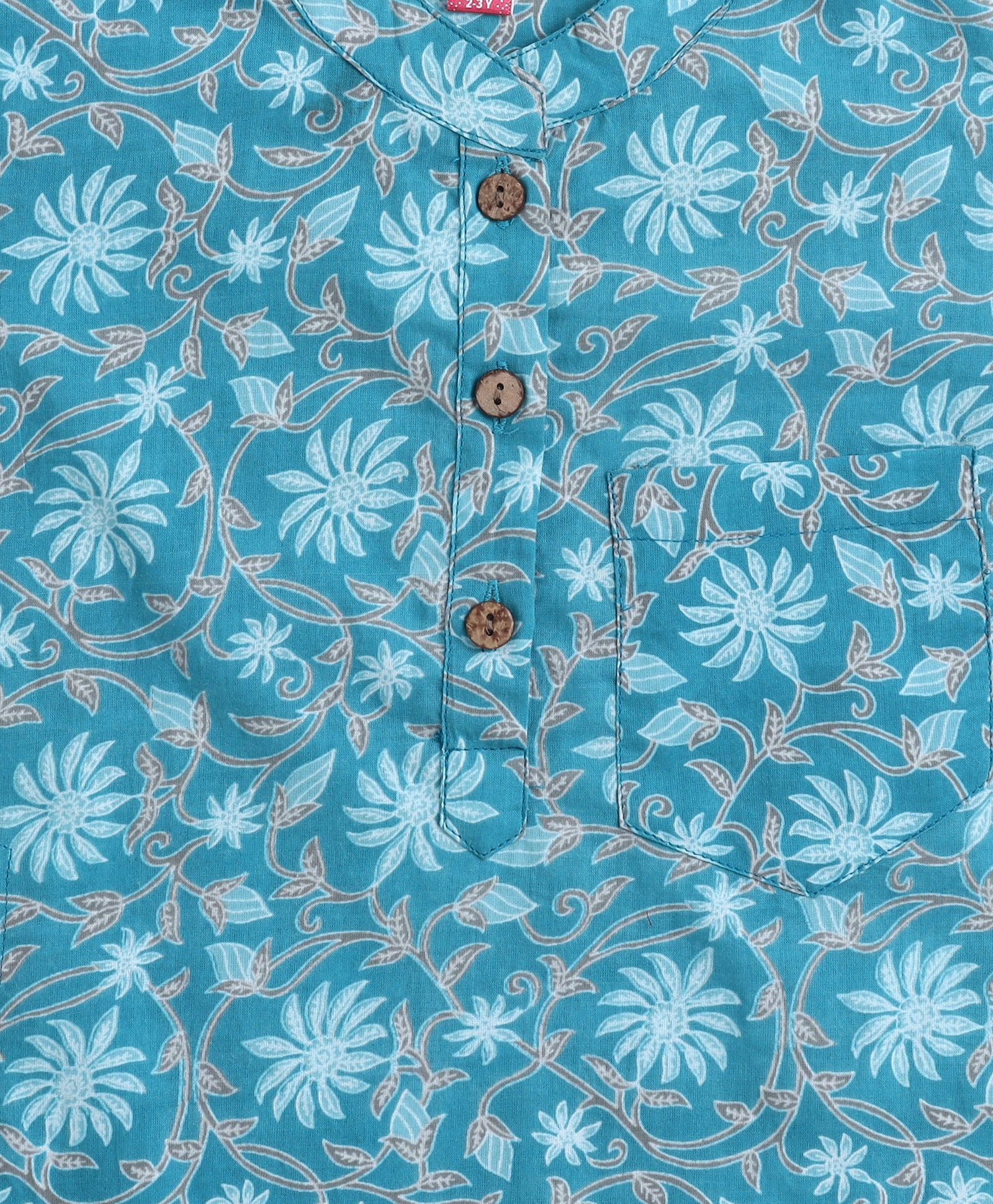 The Magic Wand Cotton Woven Full Sleeves Floral Printed Kurta & Pyjama with Jacket Set- Sea Green