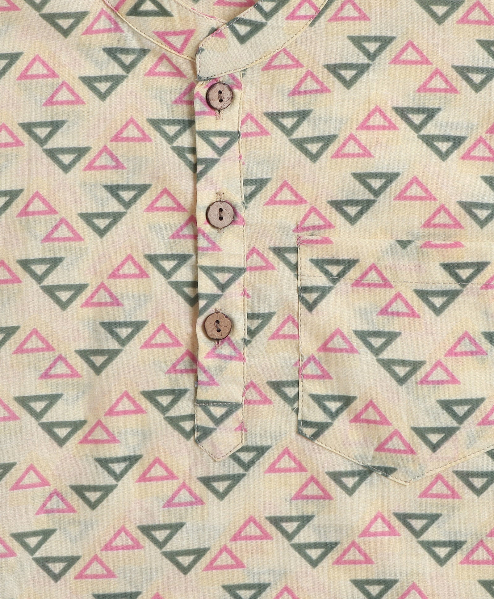 The Magic Wand Cotton Woven Full Sleeves Floral Printed Kurta & Pyjama with Jacket Set- Yellow
