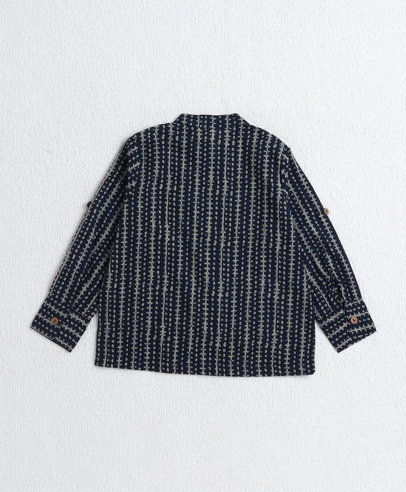 The Magic Wand Cotton Woven Full Sleeves Stripe Printed Short Kurta- Teal Blue
