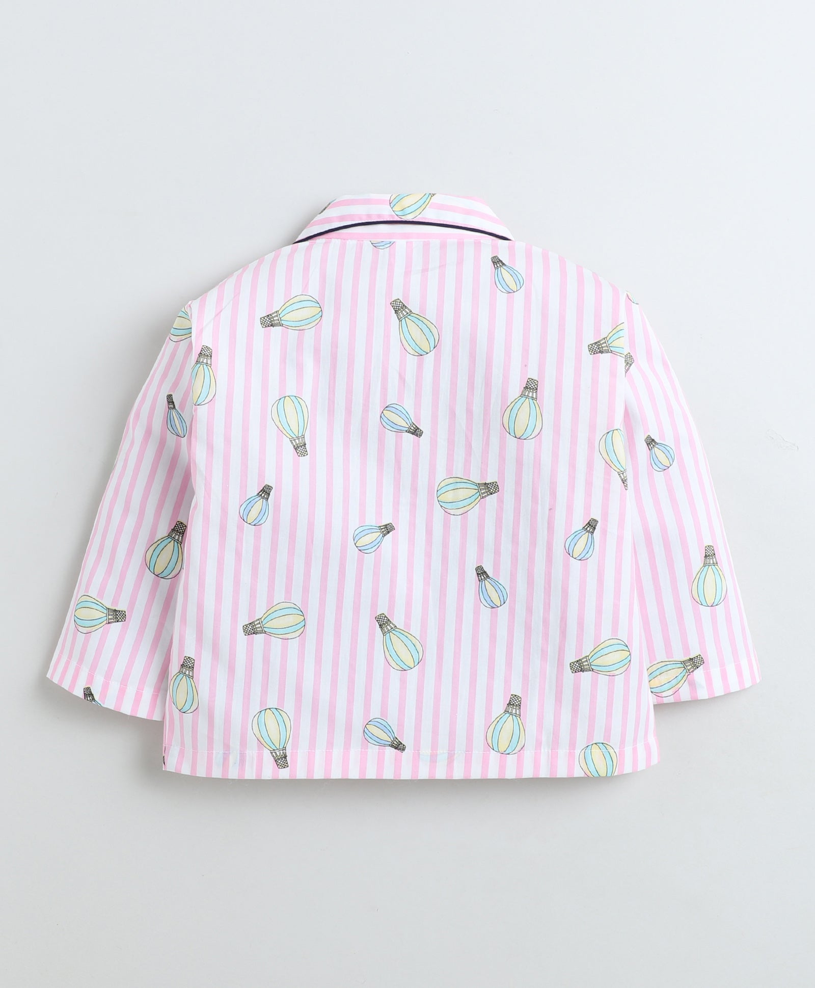 Cotton Woven Full Sleeves Striped Parachute Printed Coordinating Night Suit Set-Pink