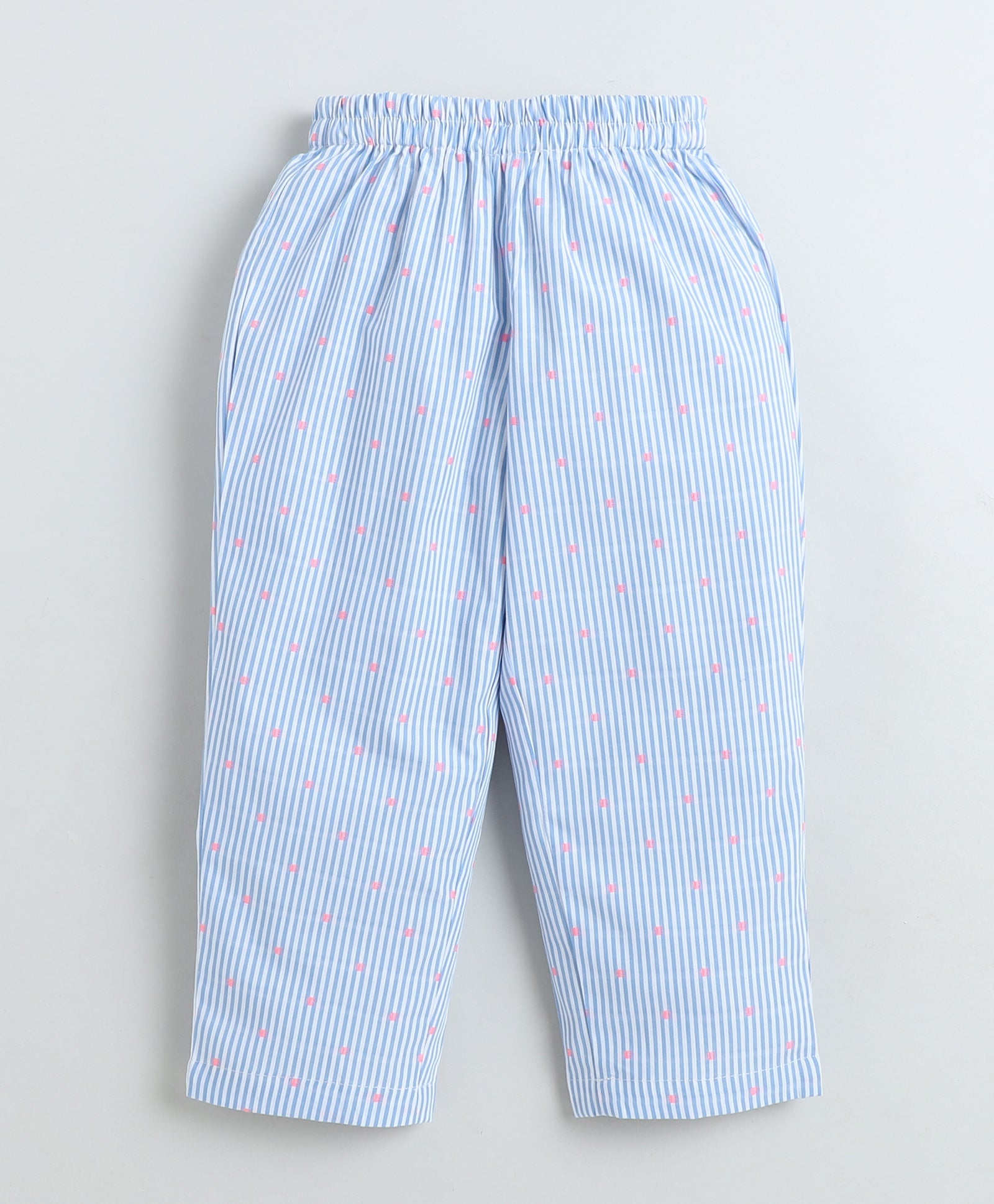 Cotton Woven Full Sleeves Striped Polka Dots Printed Coordinating Night Suit Set-Blue