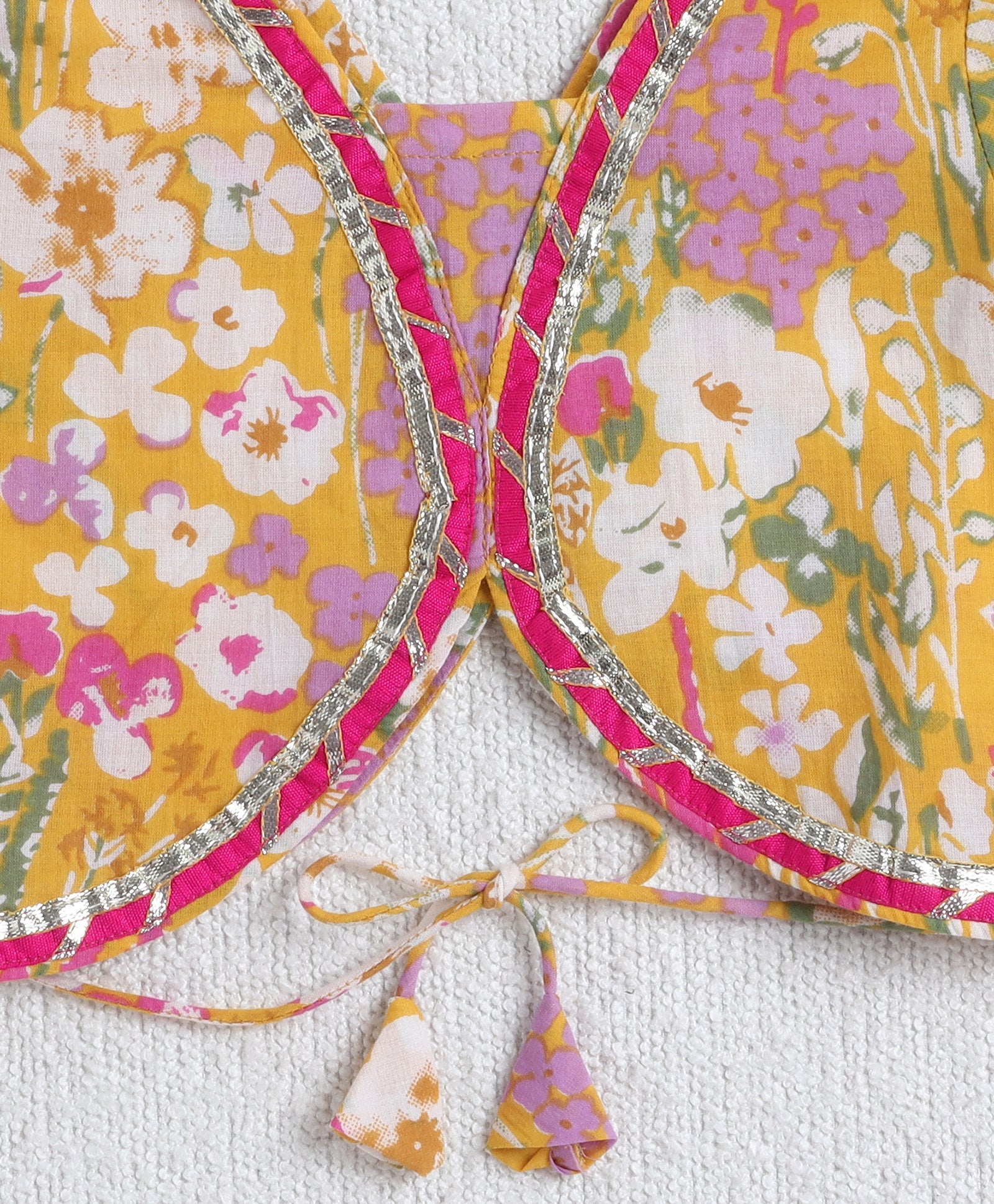 The Magic Wand Cotton Woven Half Sleeves Bandhani Printed Choli & Lehenga Set- Mustard