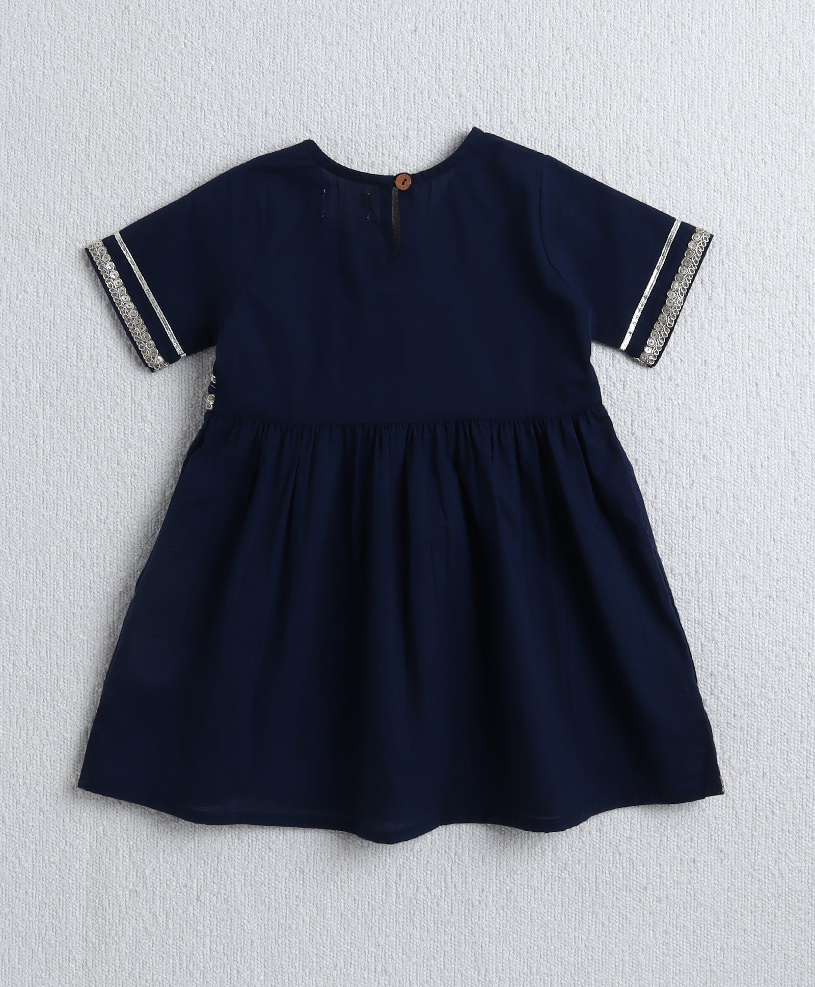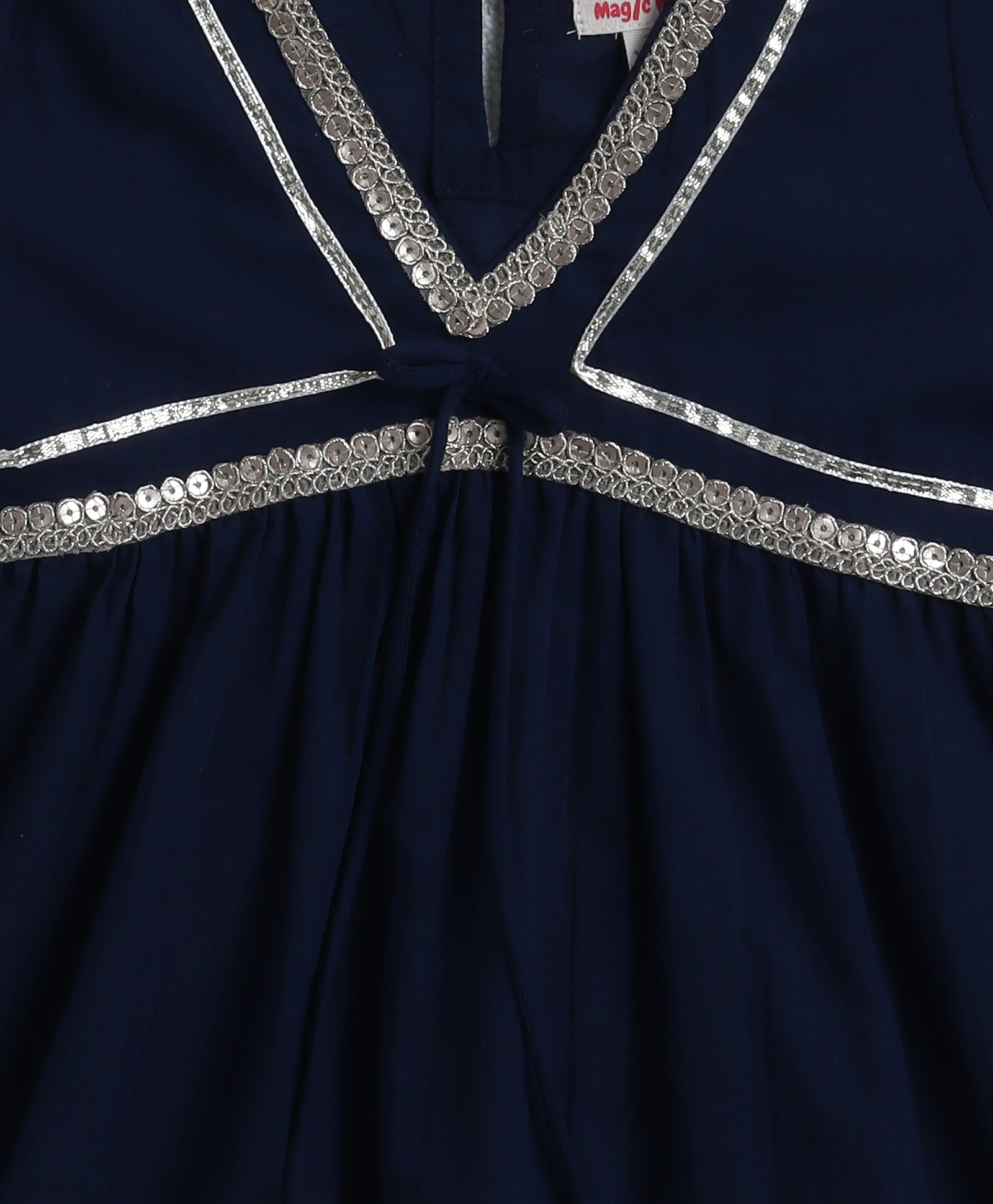 The Magic Wand Cotton Woven Half Sleeves Solid Kurta & Floral Printed Ballon Pant with Dupatta- Navy Blue