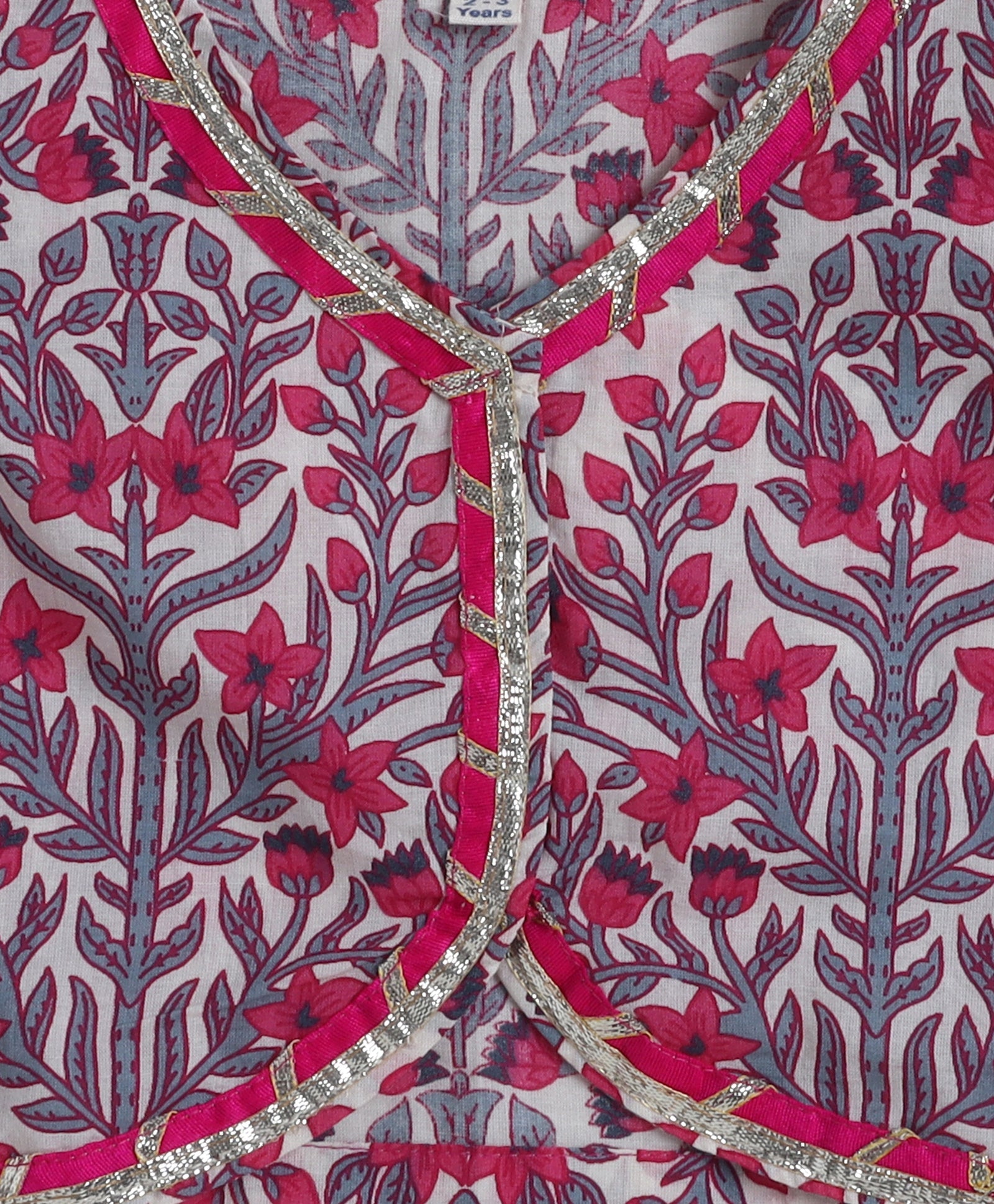 The Magic Wand Cotton Woven Ruffle Sleeves Floral Printed Choli and Lehenga Set with Dupatta - Fuchsia