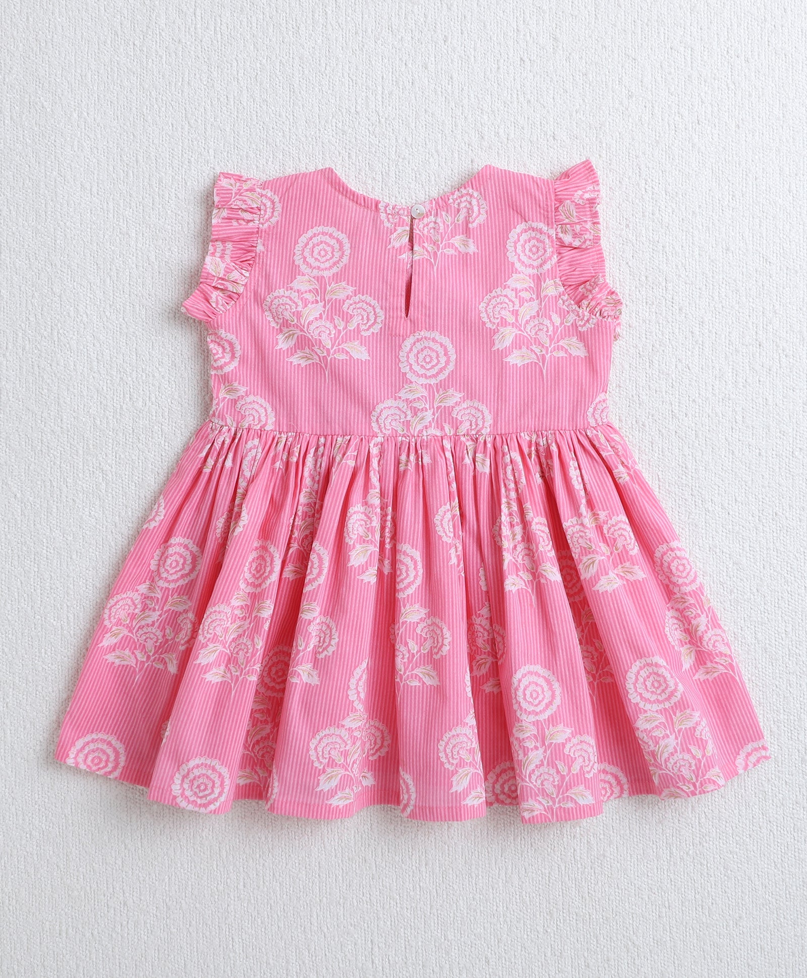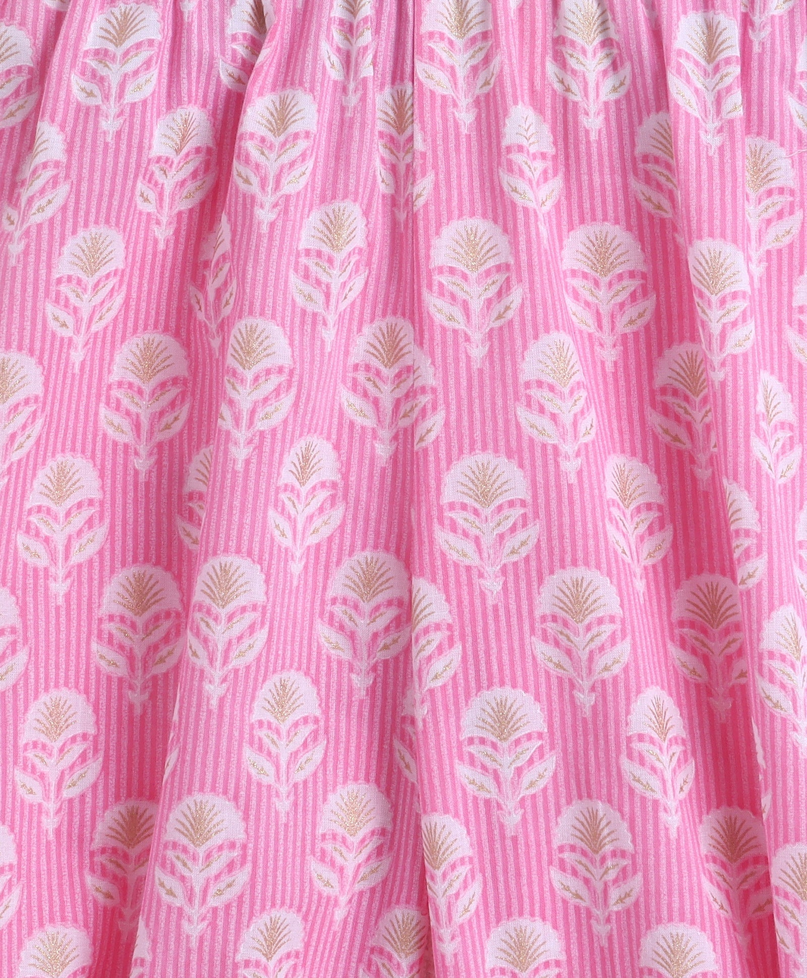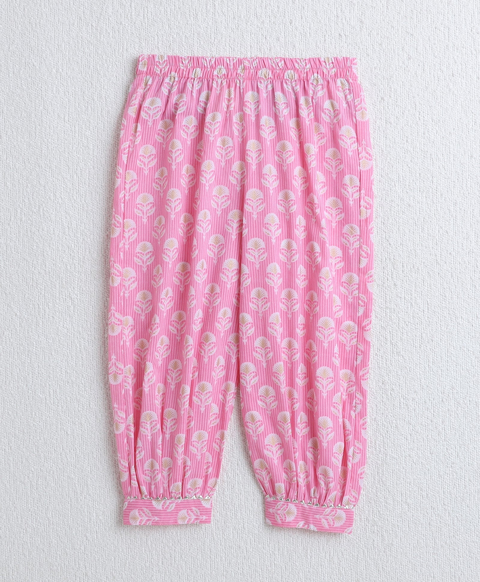 The Magic Wand Cotton Woven Sleeveless Floral Printed Kurti with Balloon Pant Set- Peach