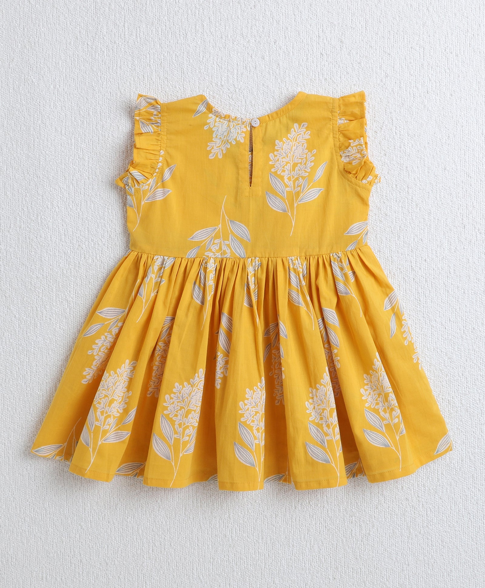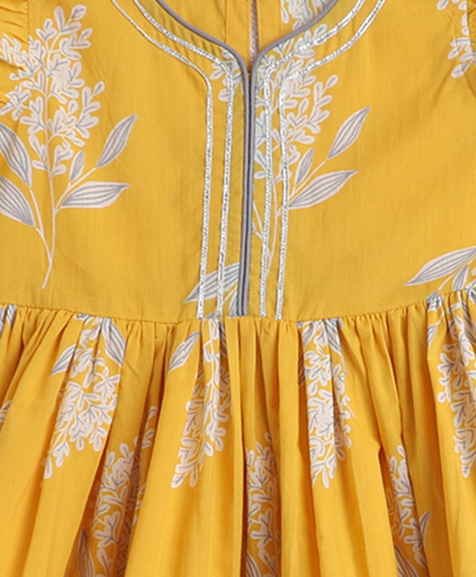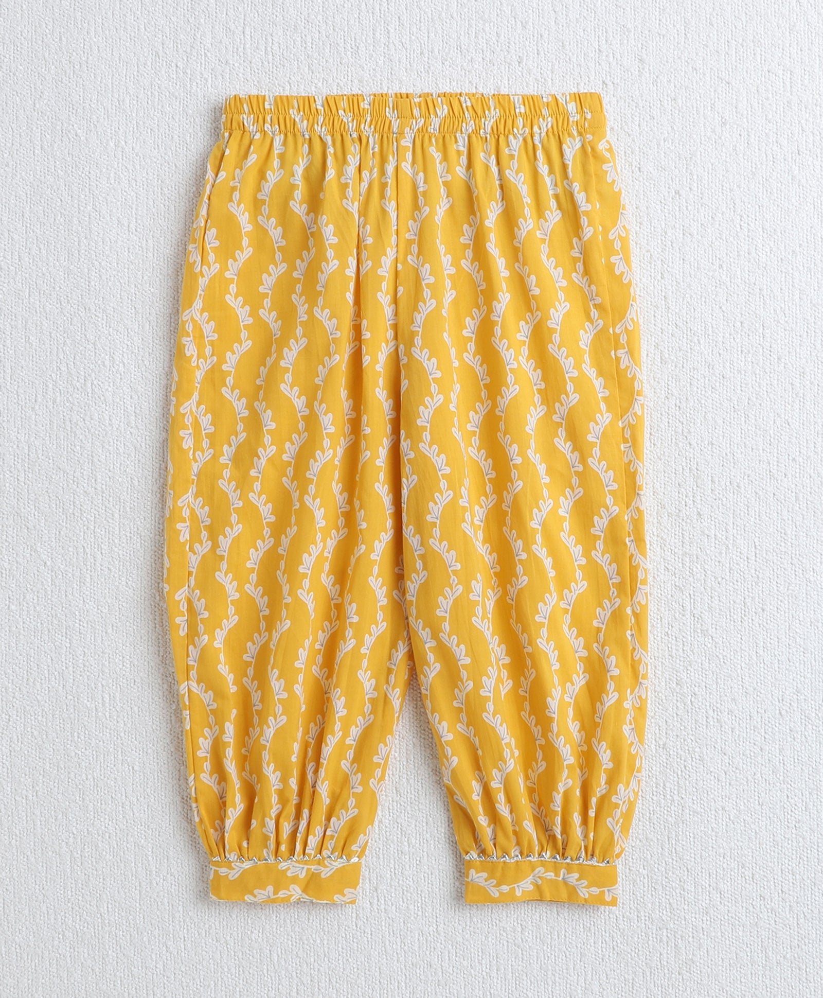 The Magic Wand Cotton Woven Sleeveless Floral Printed Kurti with Balloon Pant Set- Yellow