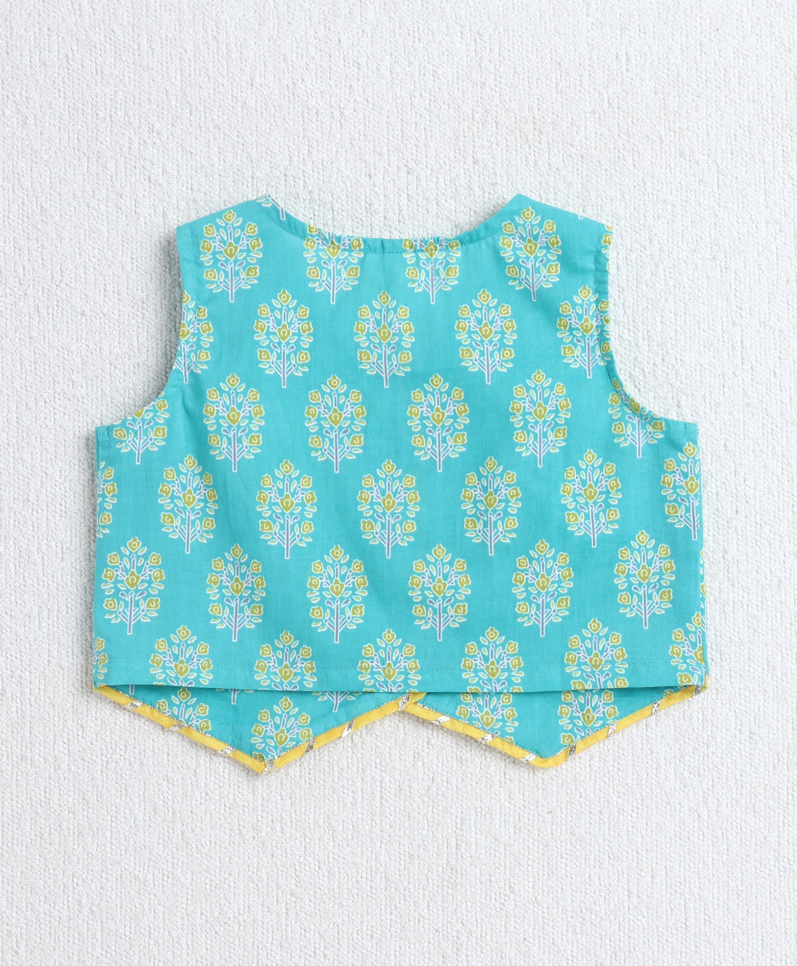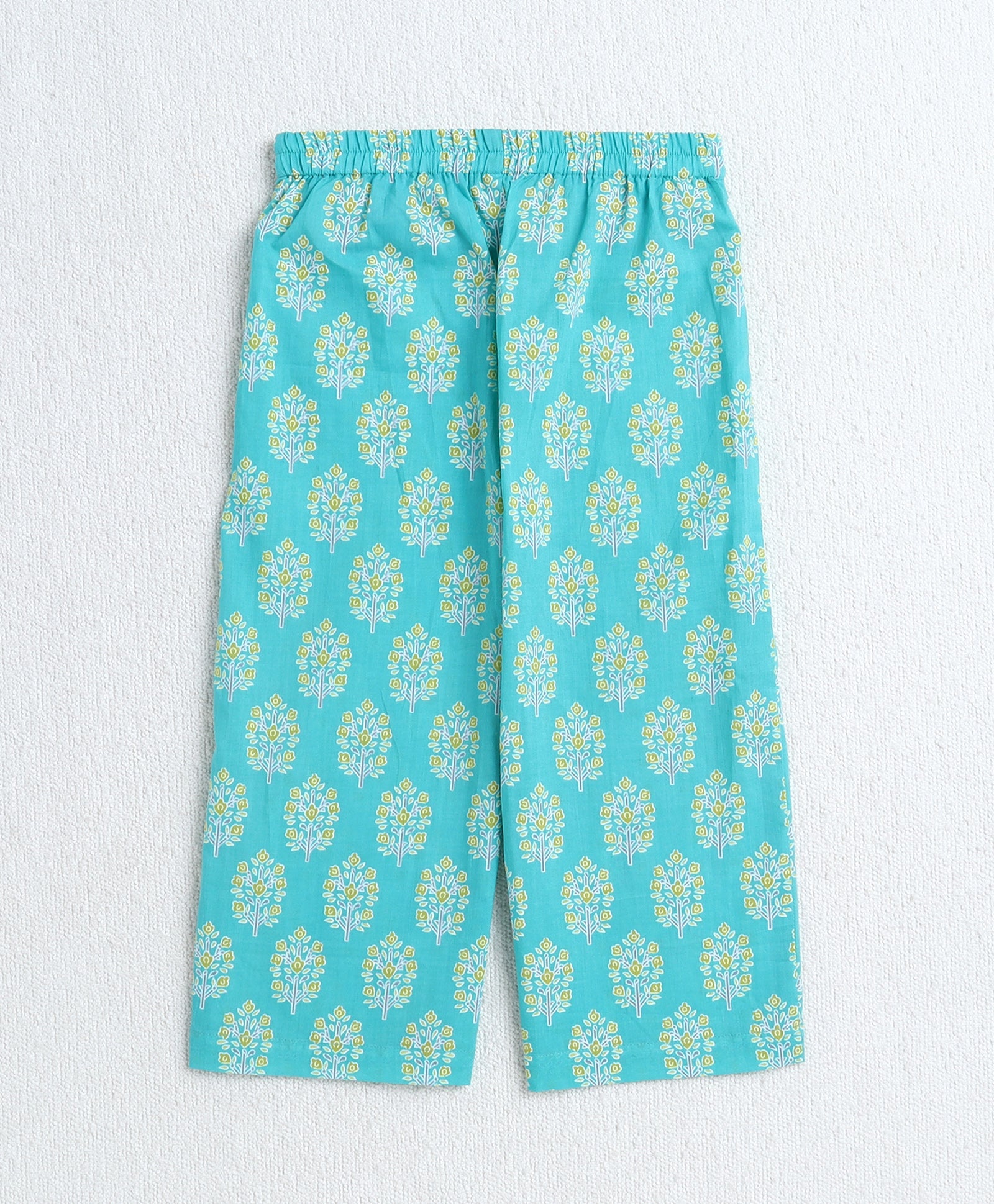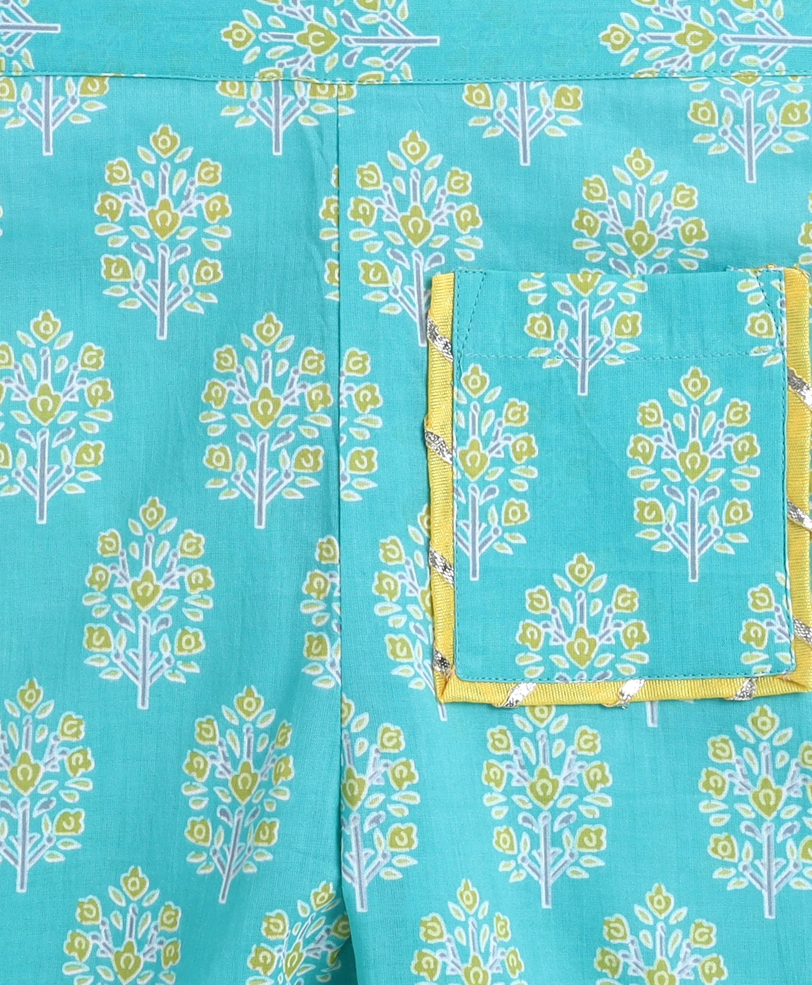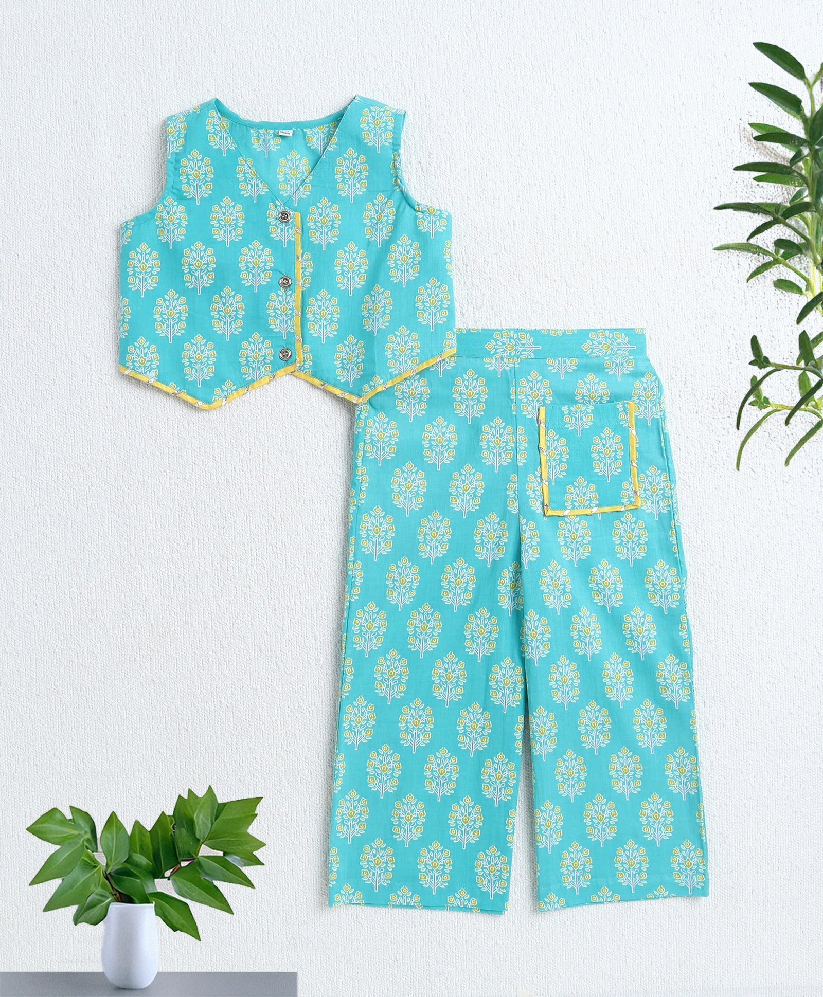 The Magic Wand Cotton Woven Sleeveless Floral Printed Top and Patch Pocket Pant Set- Green