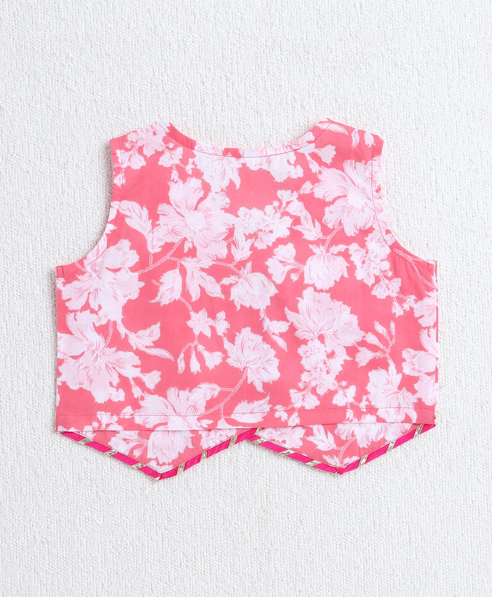 The Magic Wand Cotton Woven Sleeveless Floral Printed Top and Patch Pocket Pant Set- Peach
