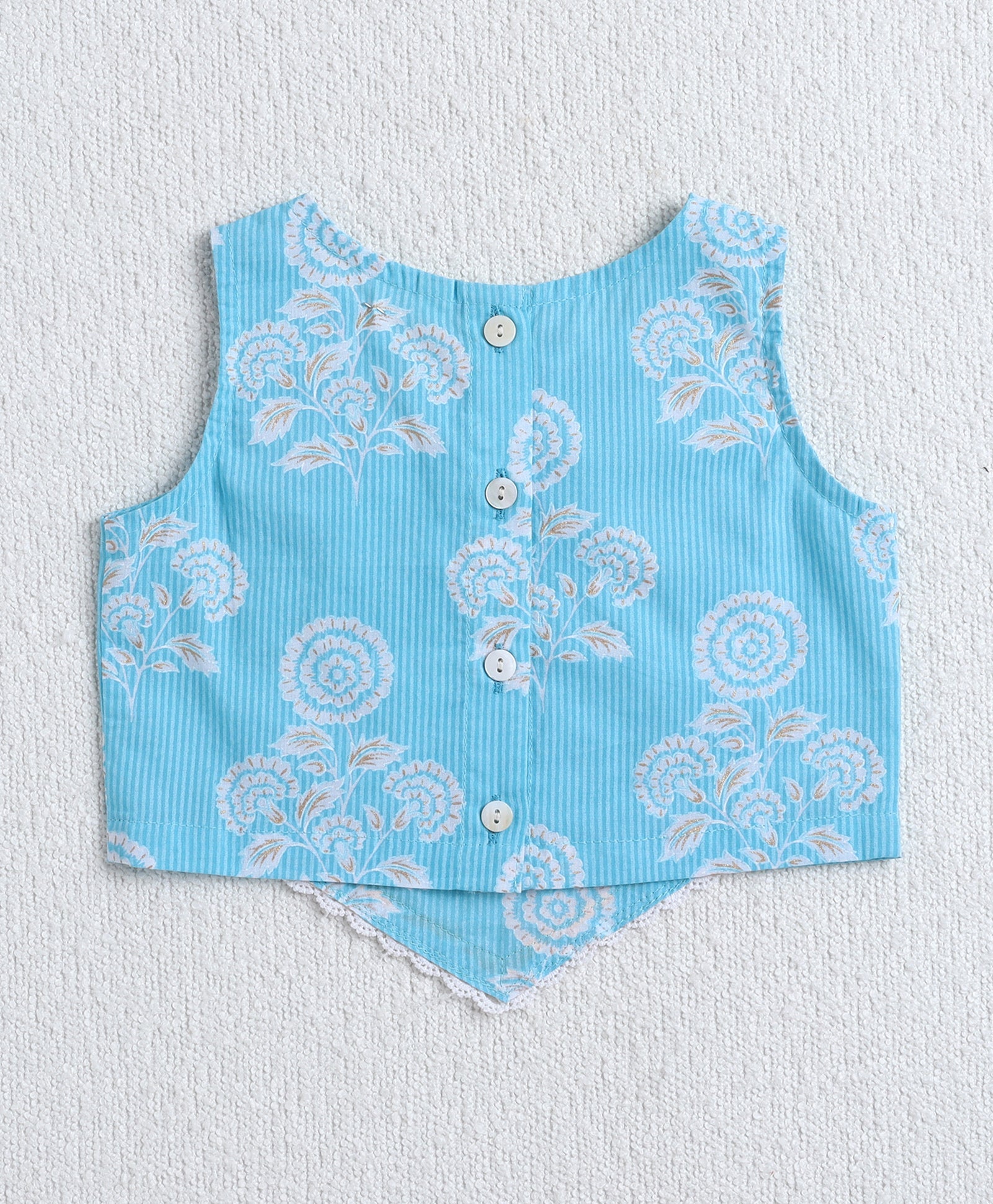 The Magic Wand Cotton Woven Sleveless Floral printed Lace Detailed Choli & Lehenga Set with Dupatta- Blue