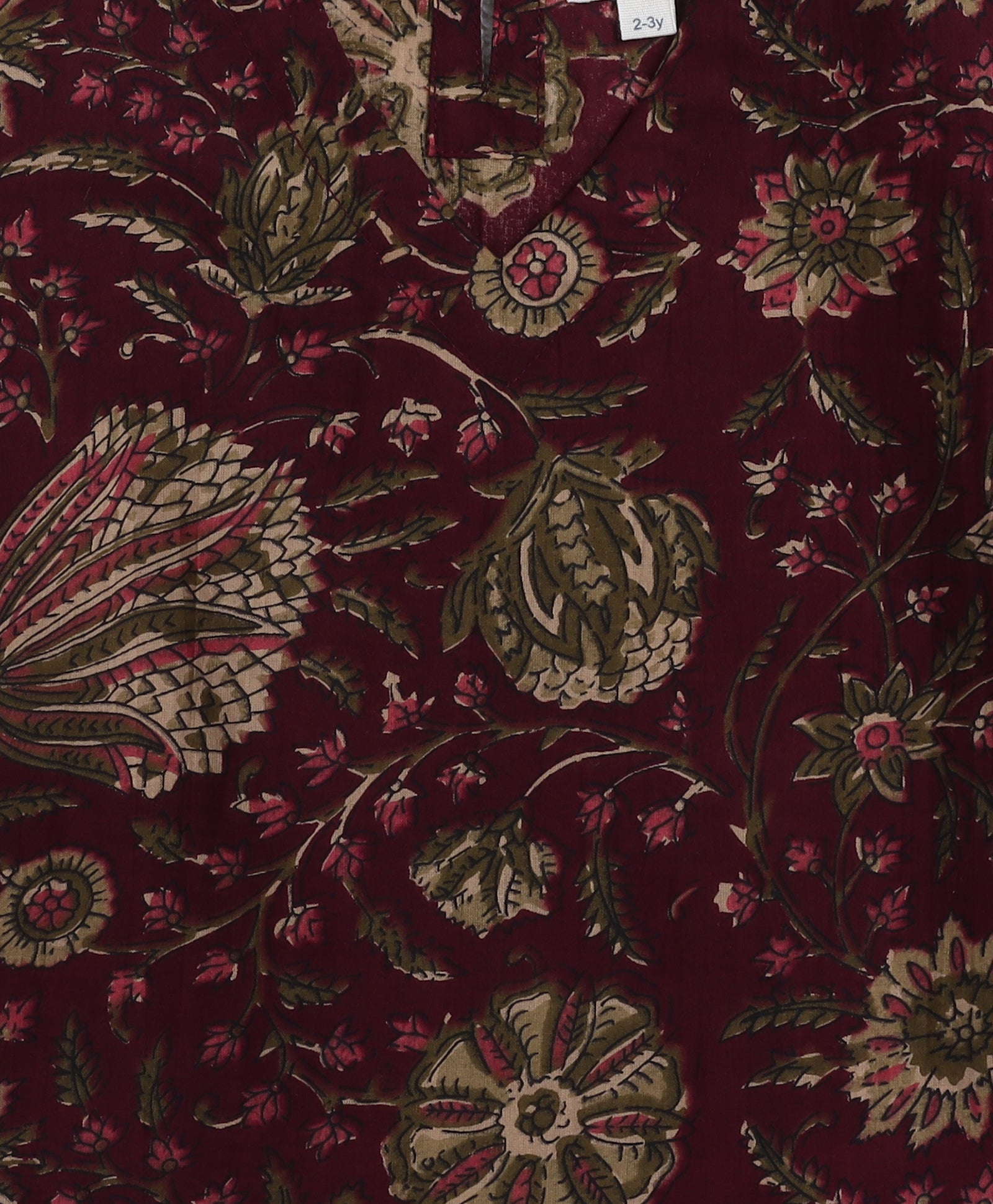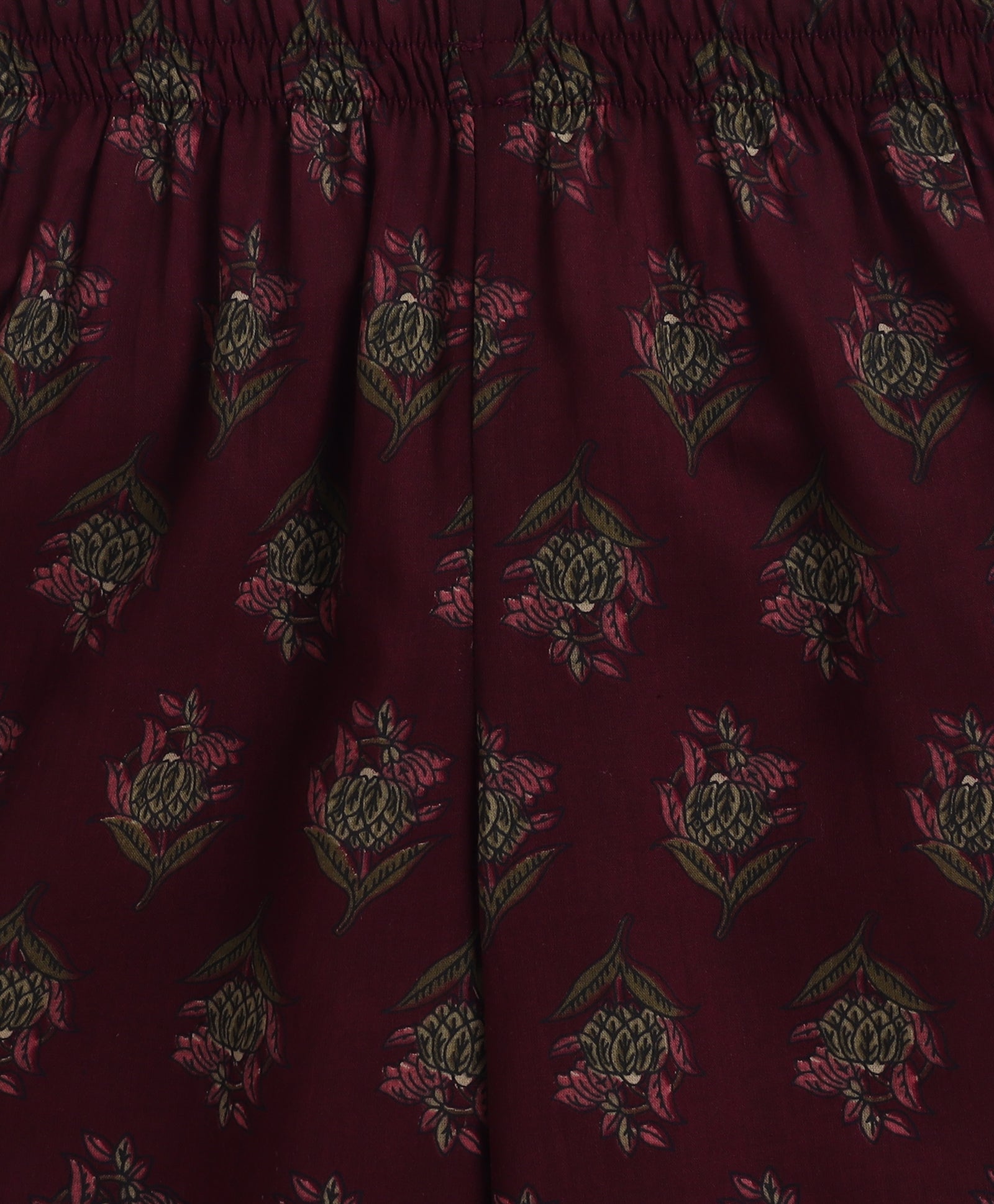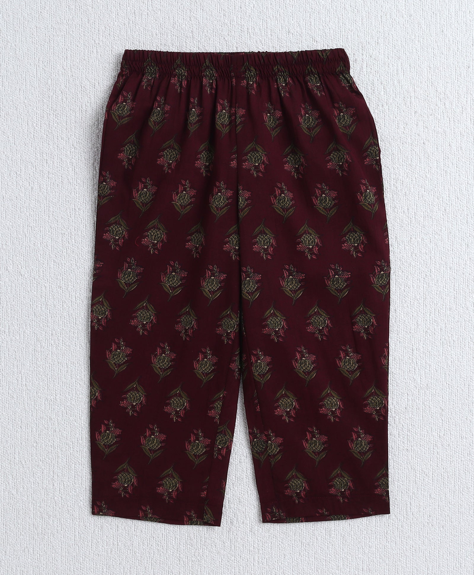 Cotton Woven Three Fourth Sleeves AII Over Printed Top and Bottom Set- Wine
