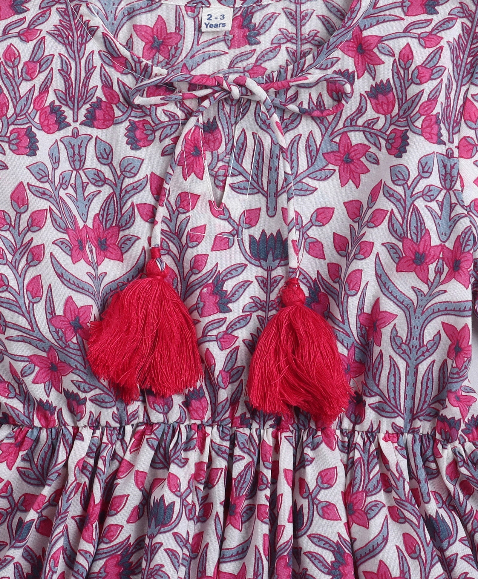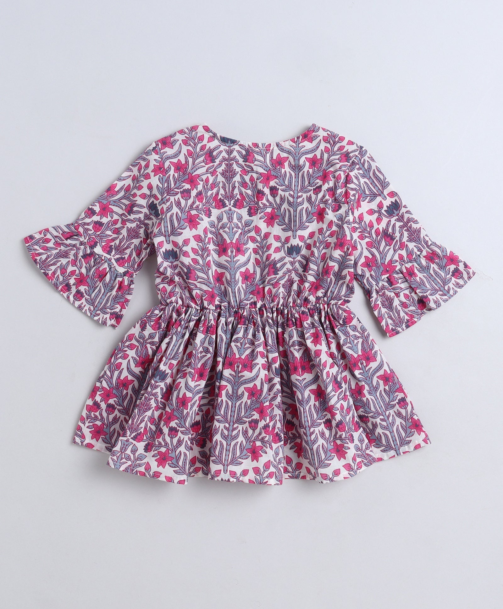 Cotton Woven Three Fourth Sleeves Floral Printed Top- Lavender