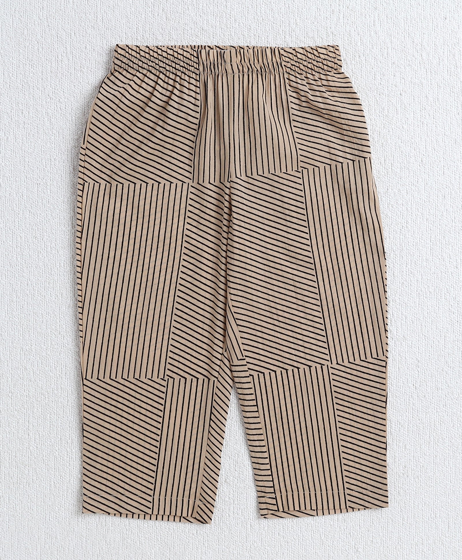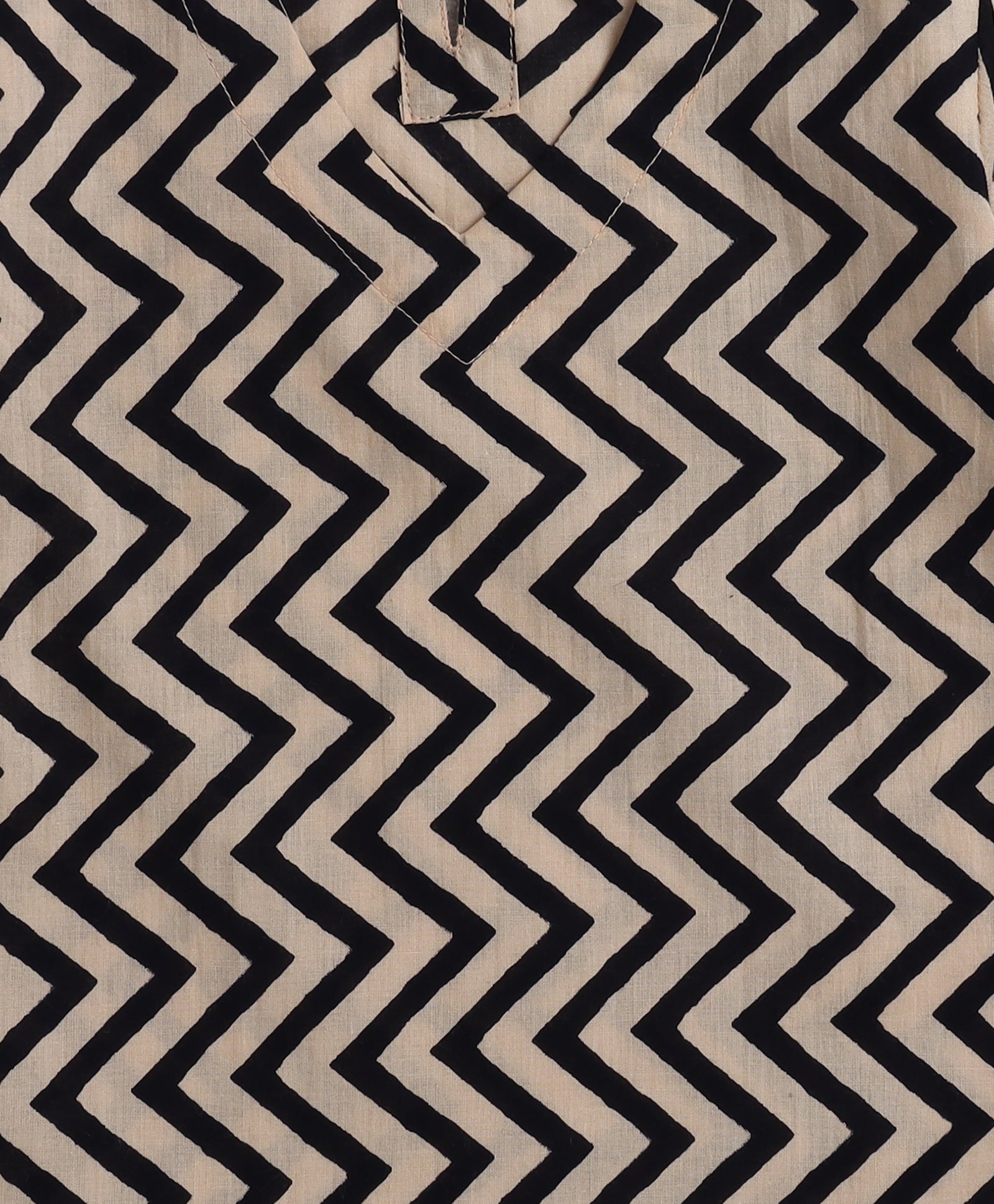 Cotton Woven Three Fourth Sleeves Zig Zag Printed Top and Bottom Set- Black