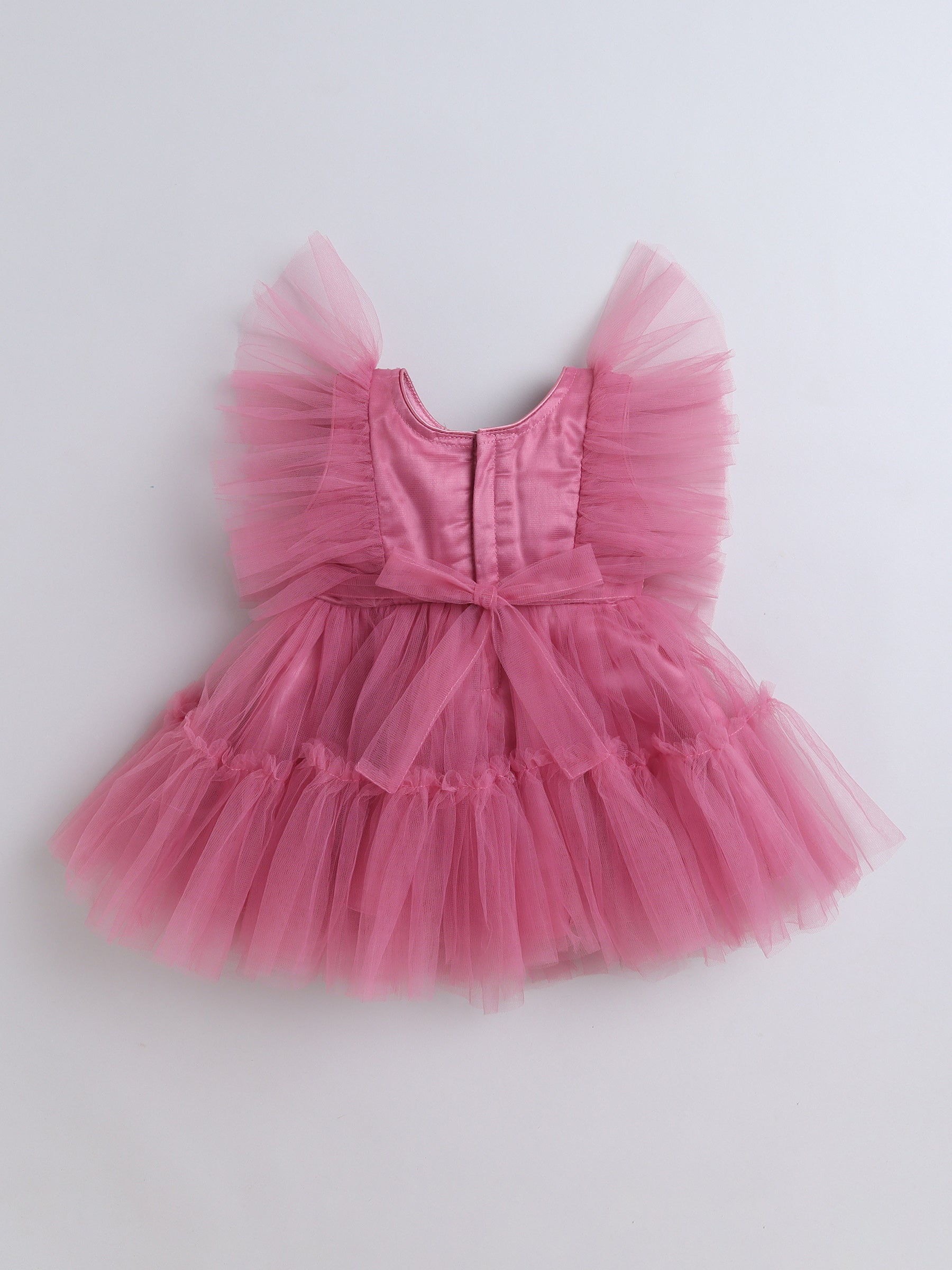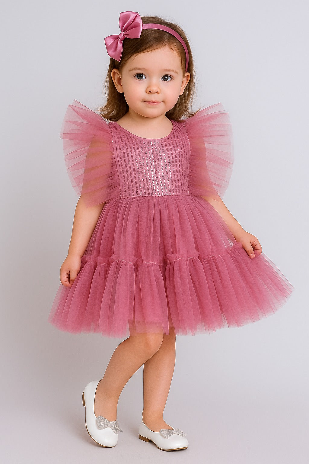 The Magic Wand Flutter Sleeves Shimmer Party Dress Onion Pink