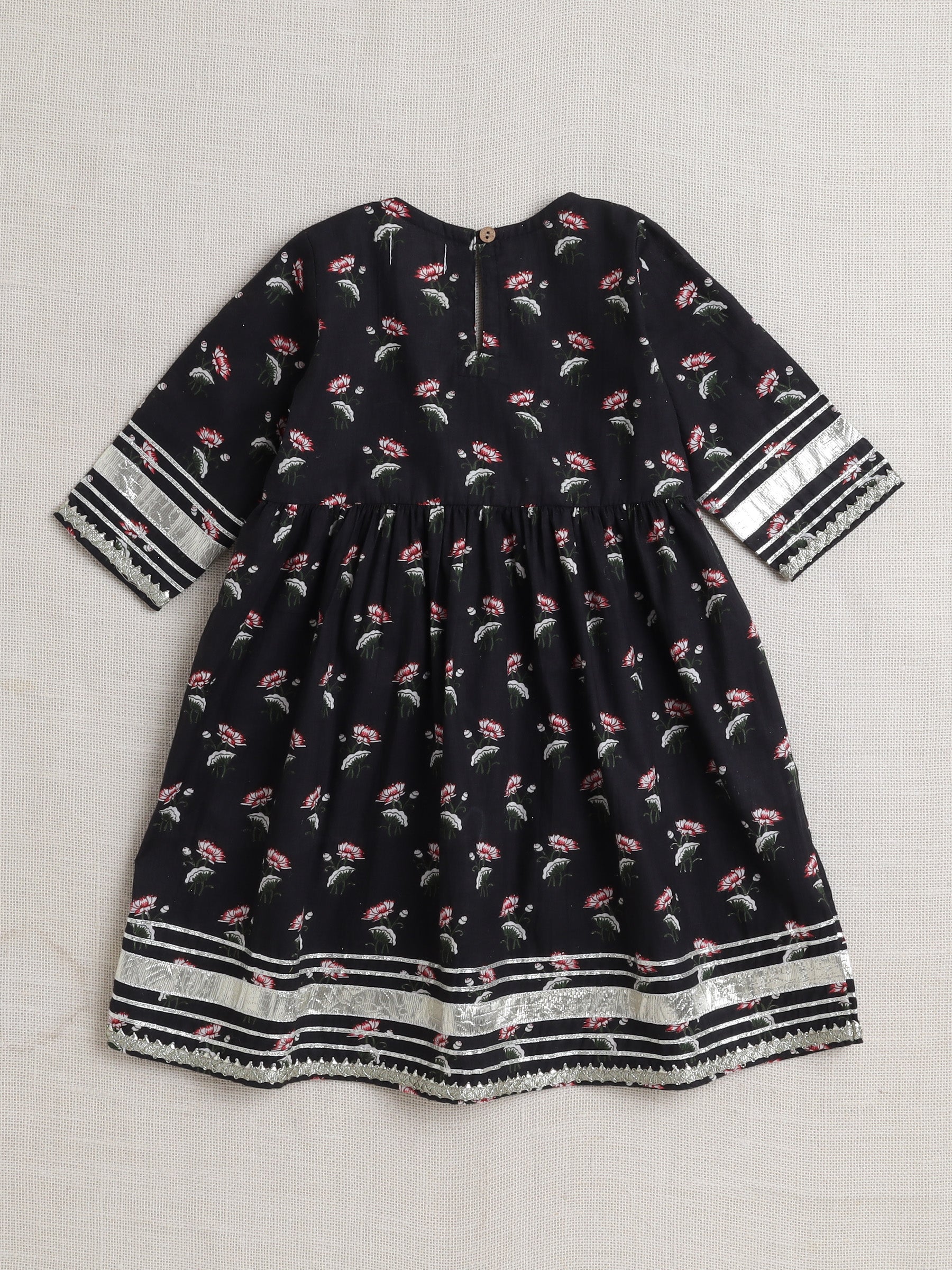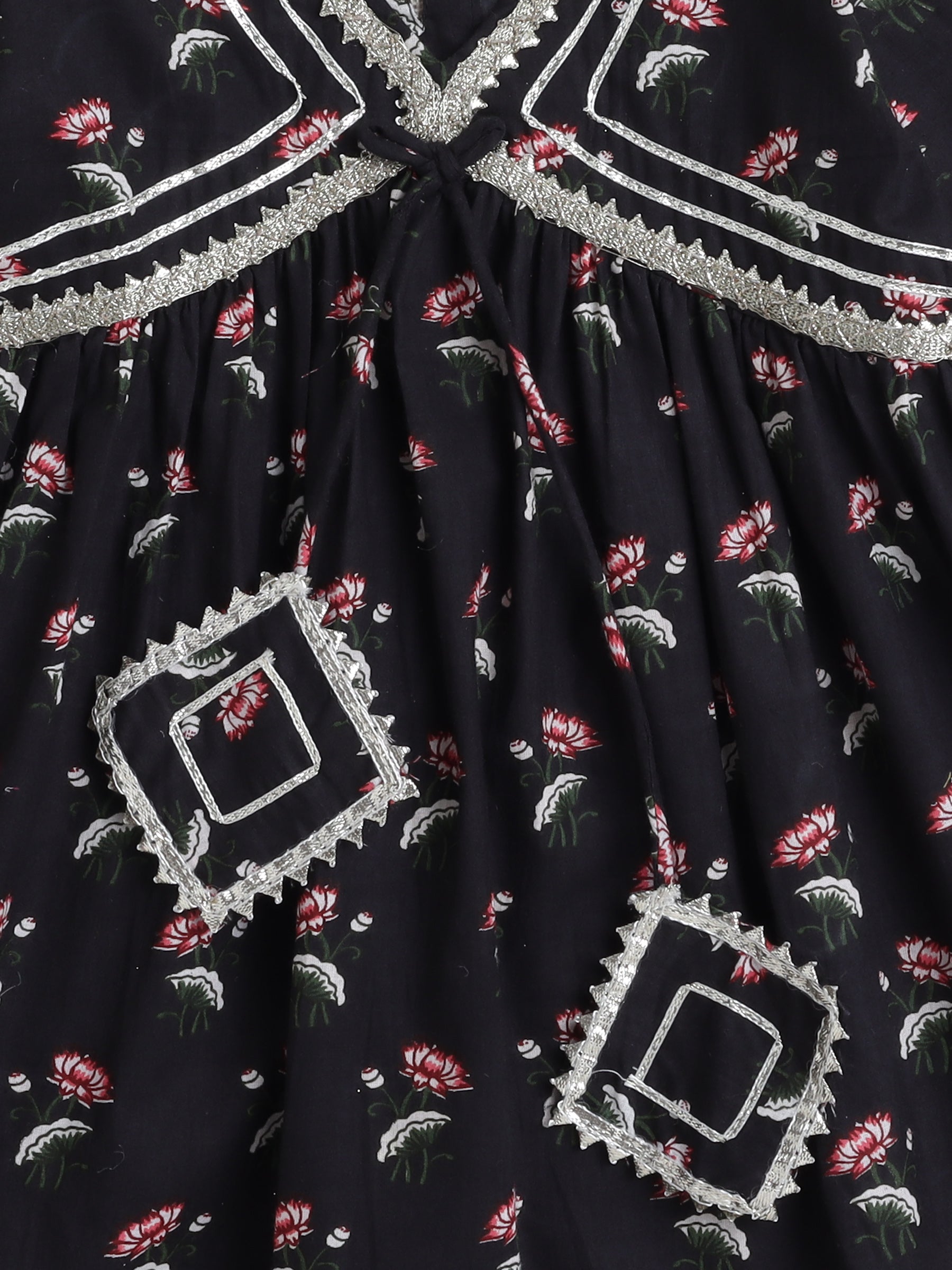 The Magic Wand Half Sleeves Floral Print Alia Cut Kurta Set-Black