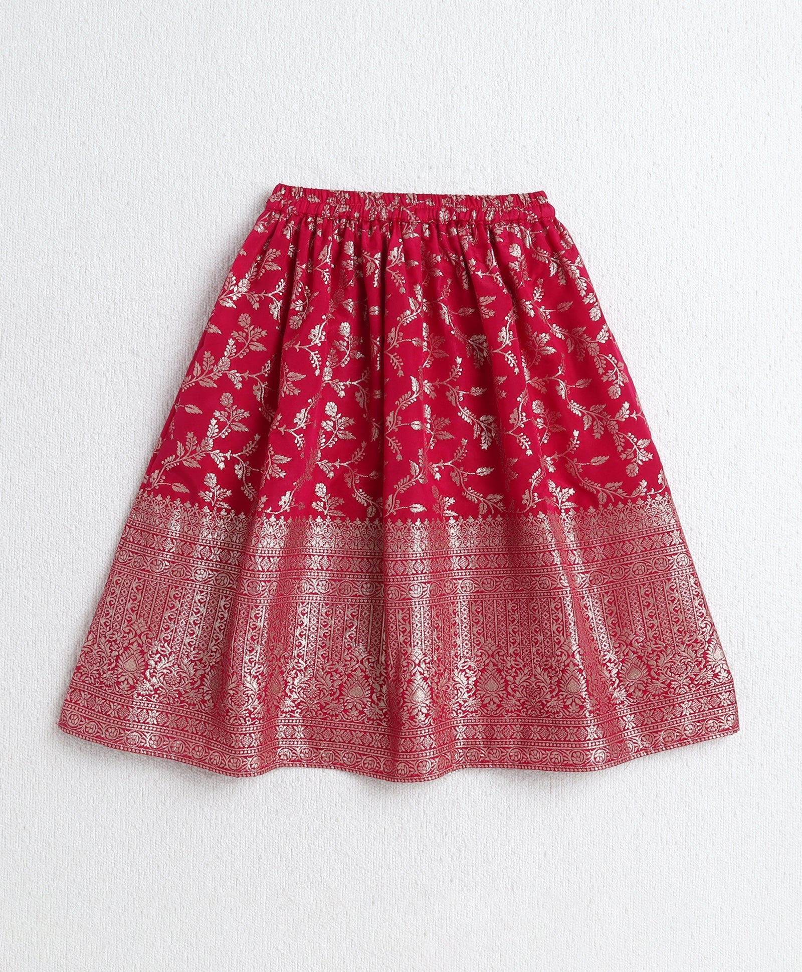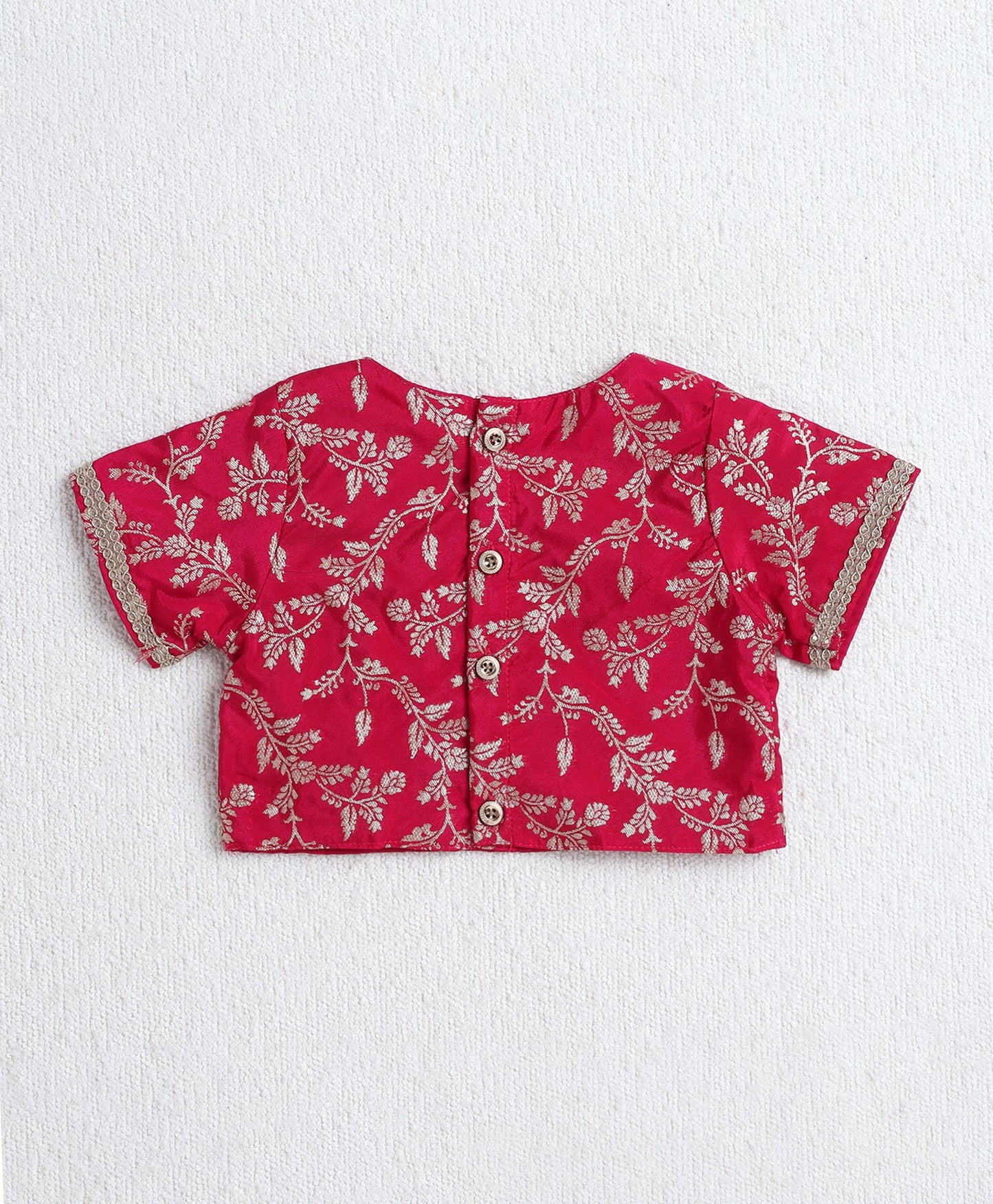 The Magic Wand Jacquard Woven Half Sleeves Leaves Foil Printed & Gota Lace Embellished Choli Lehenga With Dupatta Set- Fuchisa