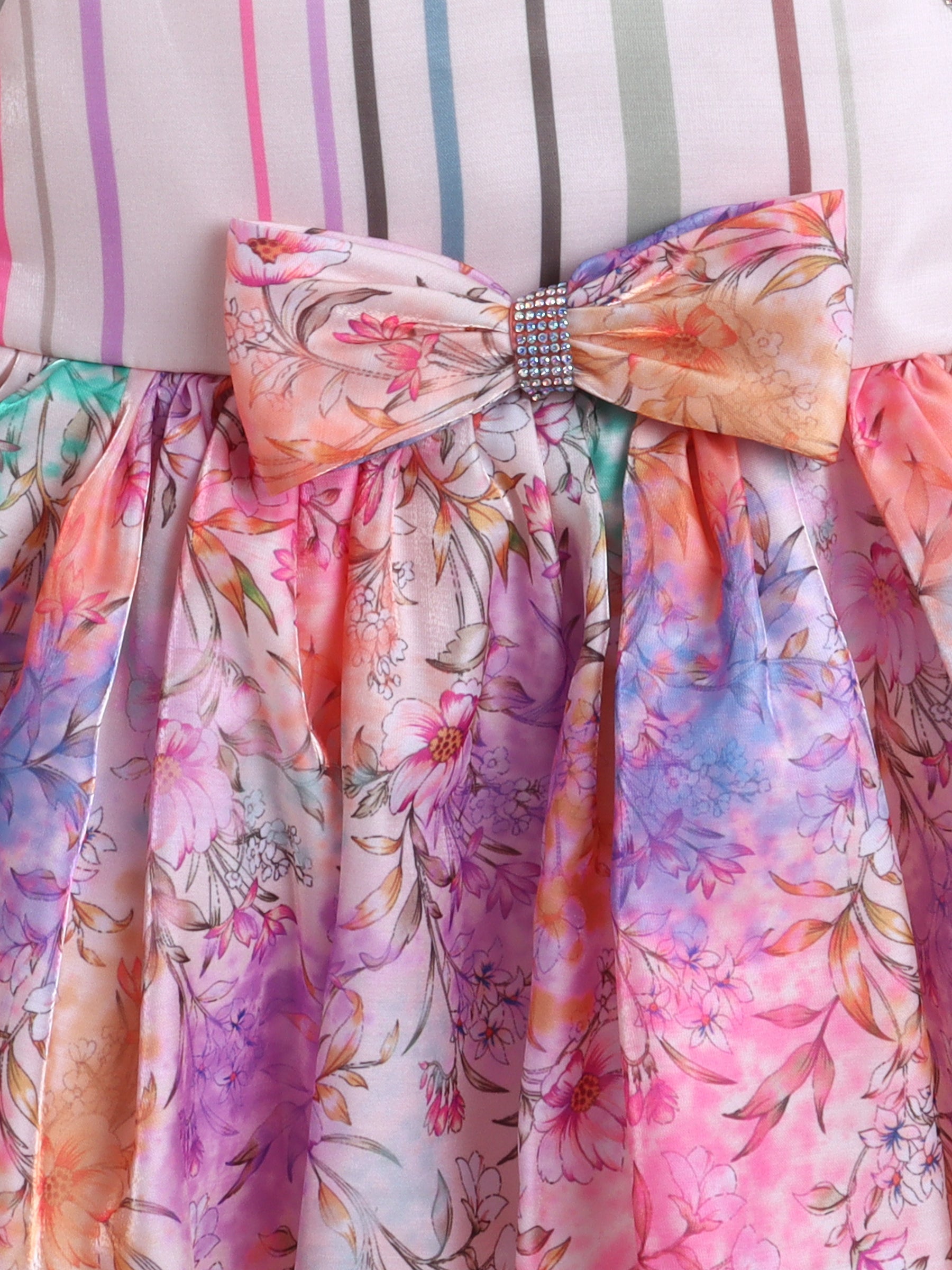 The Magic Wand One Shoulder Bow Applique All Over Printed Dress - Pink