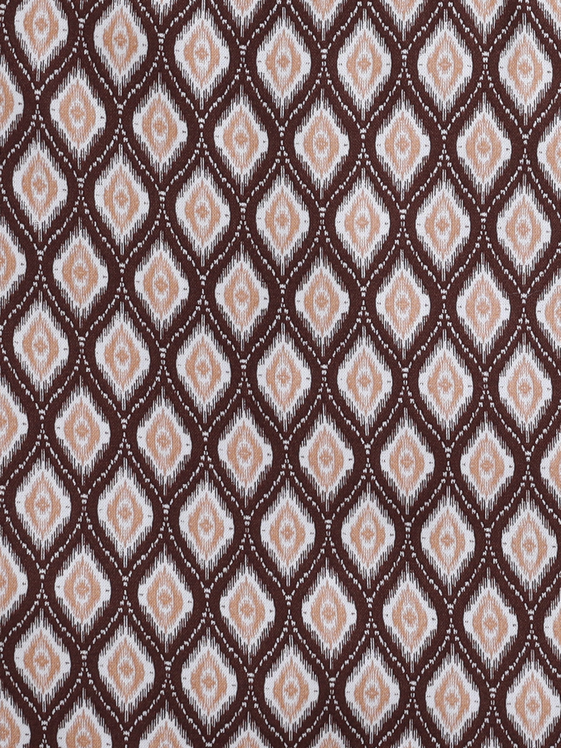 Rayon Ikat Printed Frill Detailed Incut Top-Brown