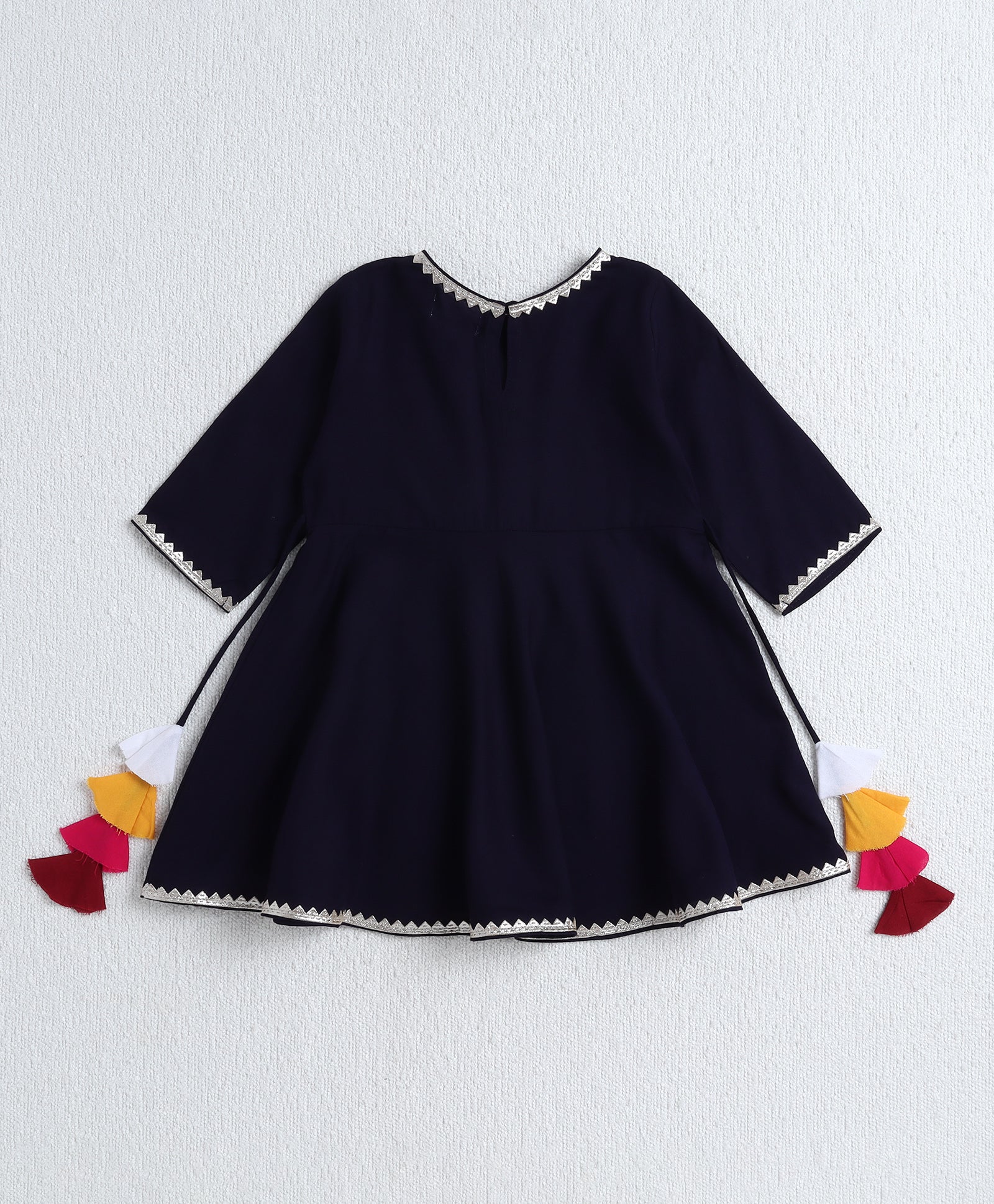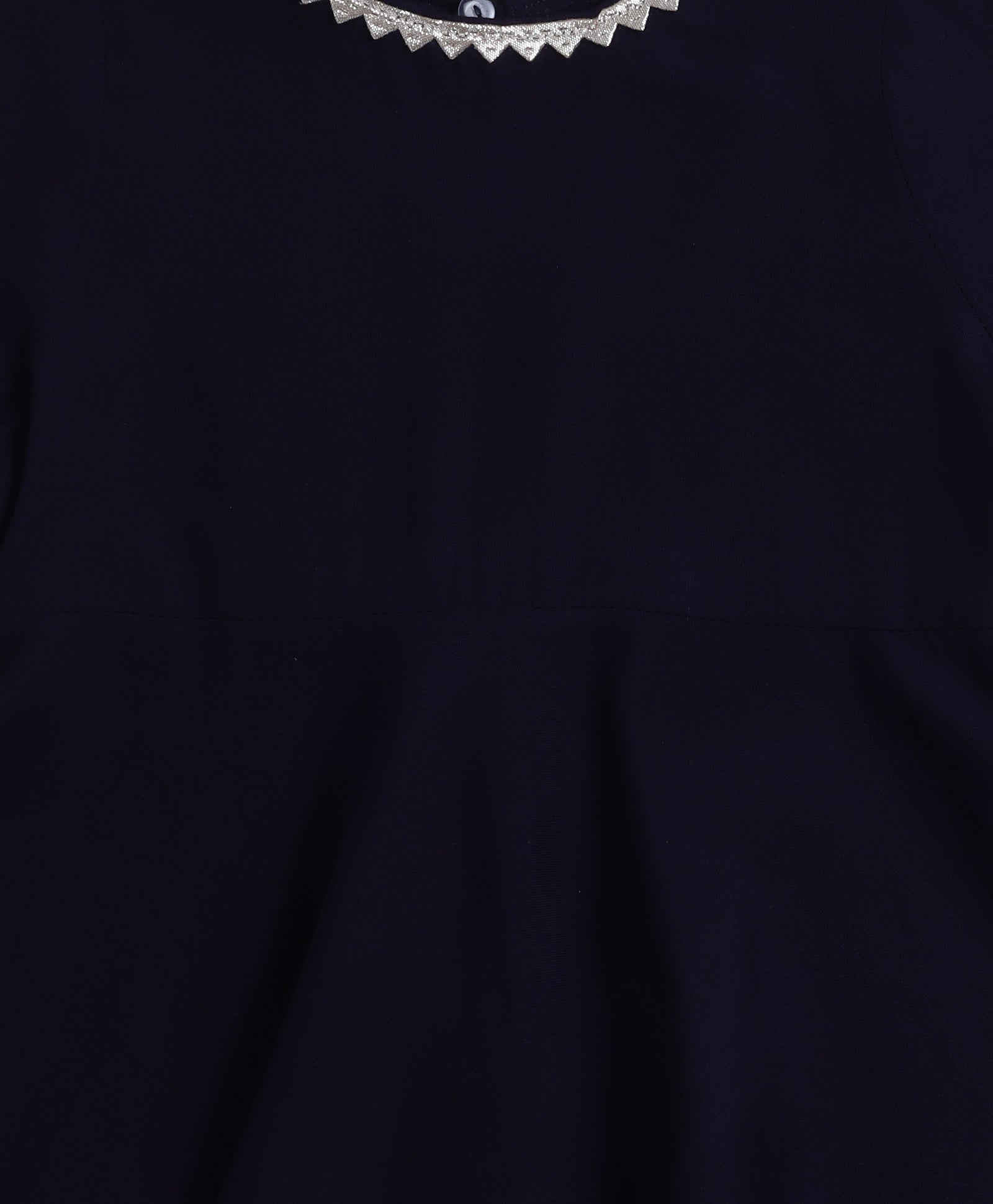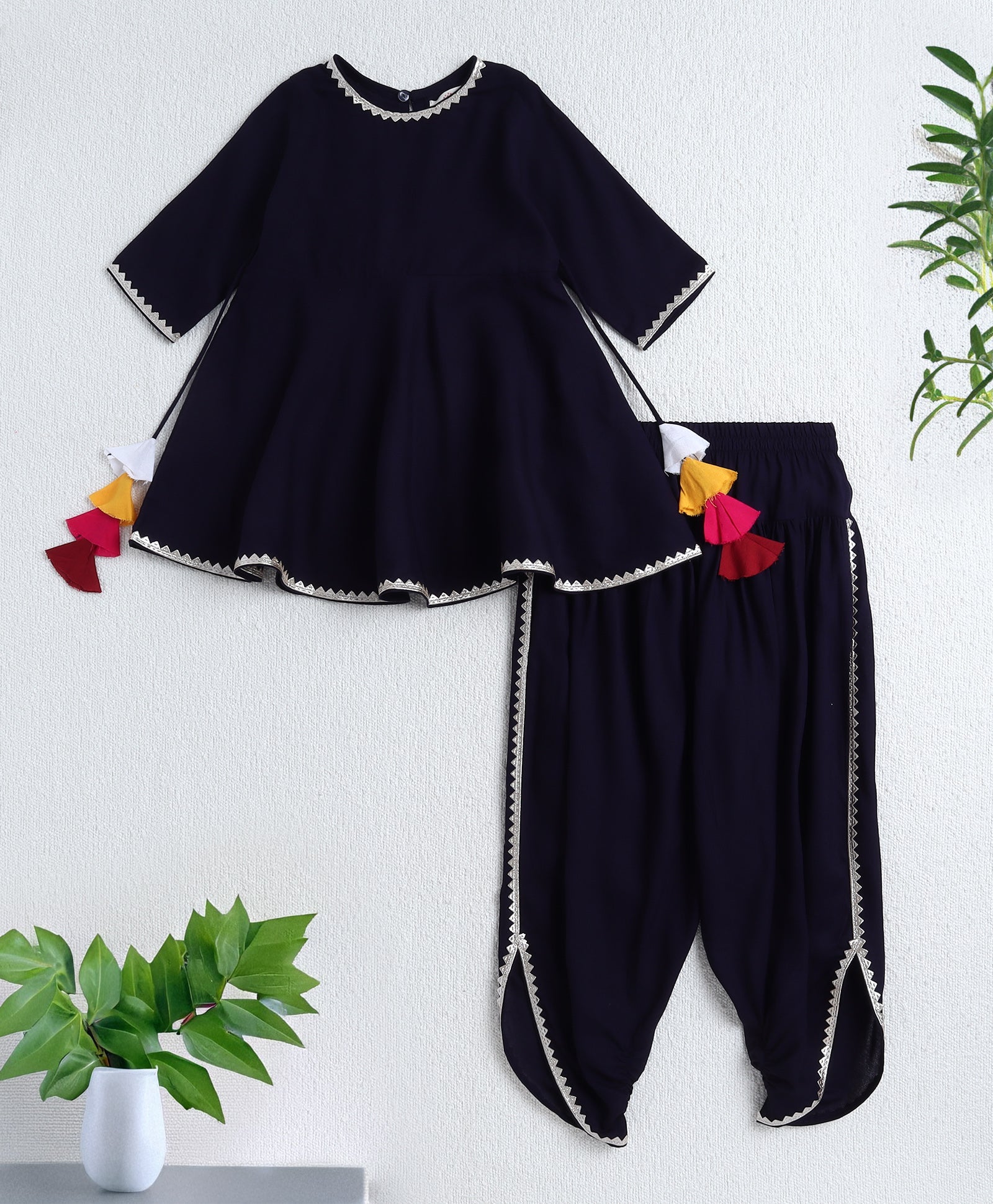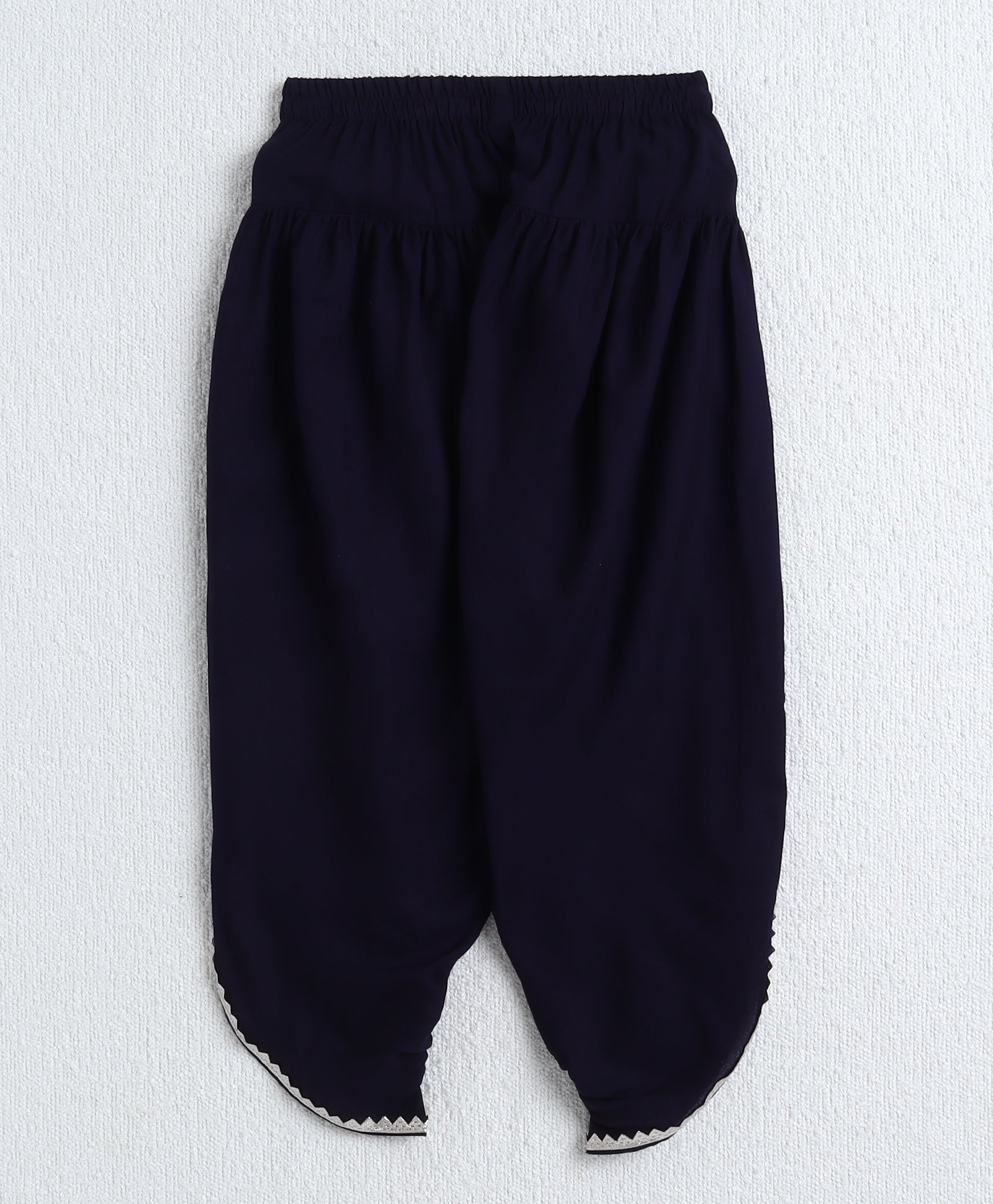 The Magic Wand Rayon Woven Elbow Sleeves Solid Anarkali Kurta with Dhoti Pants- Navy Blue