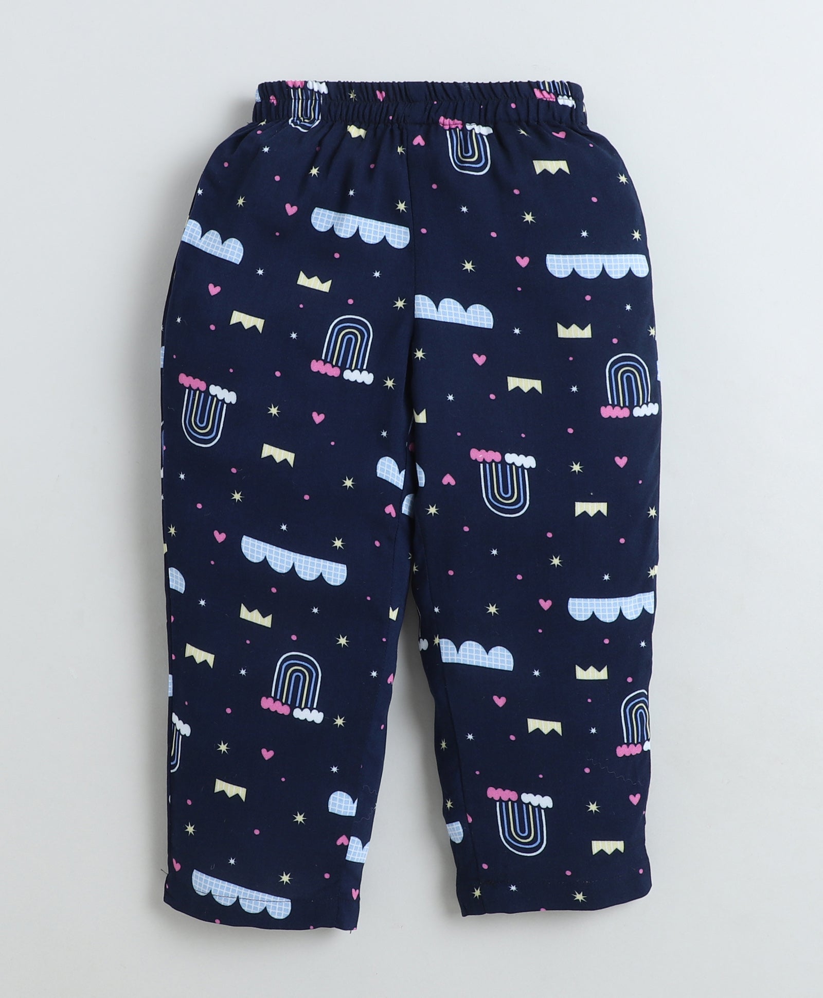 Rayon Woven Full Sleeves Rainbow Printed Coordinating Night Suit Set-Navy Blue