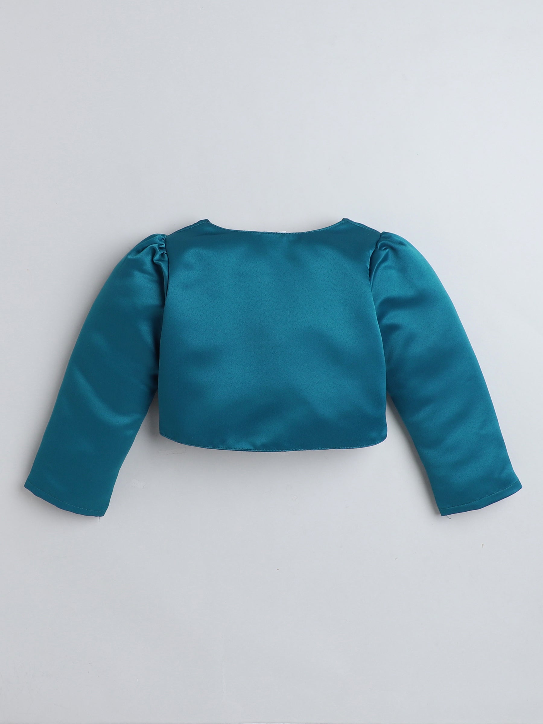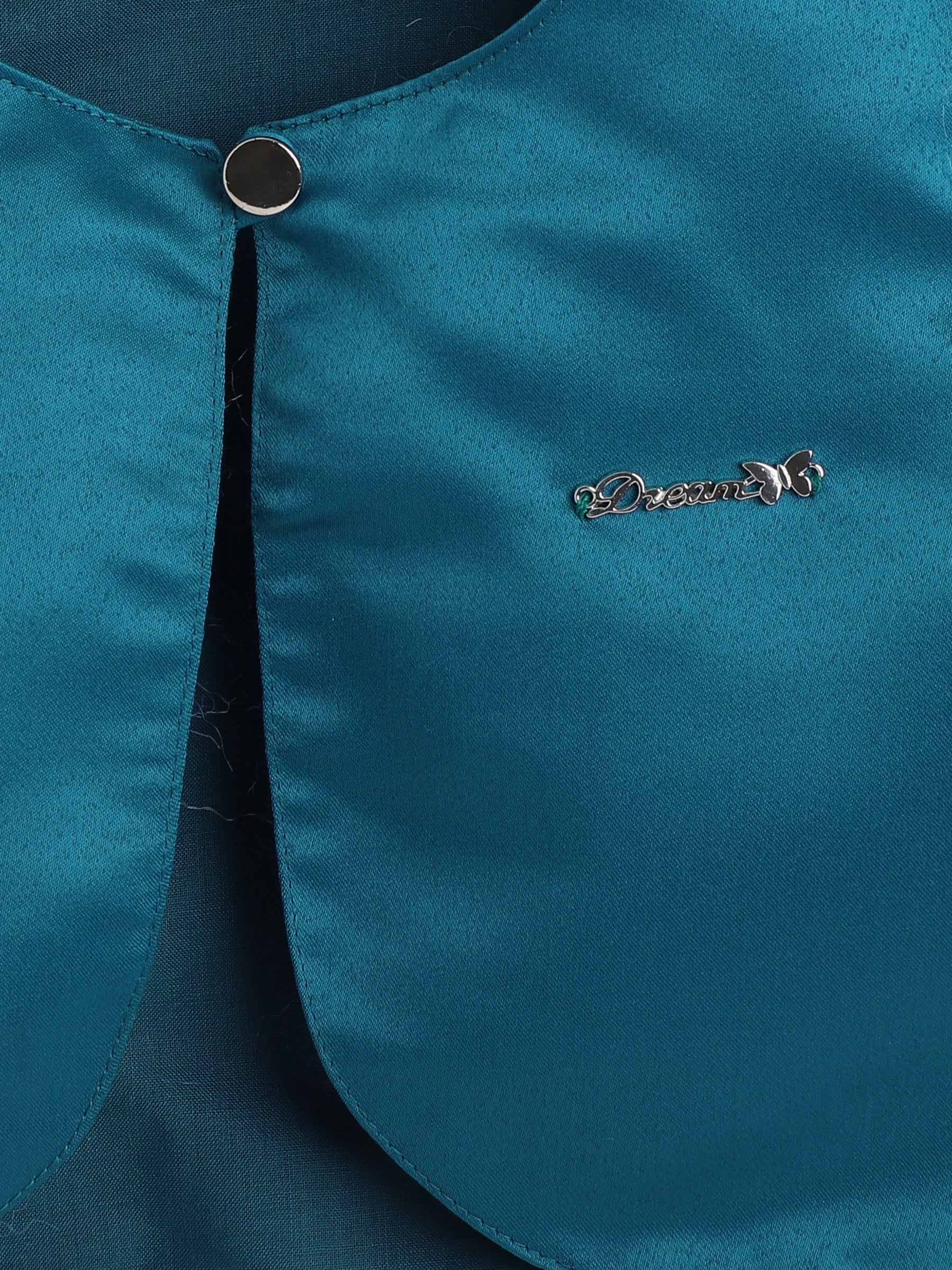 The Magic Wand Satin Full Sleeves Solid Bolero Shrug With Brooch Peacock Blue